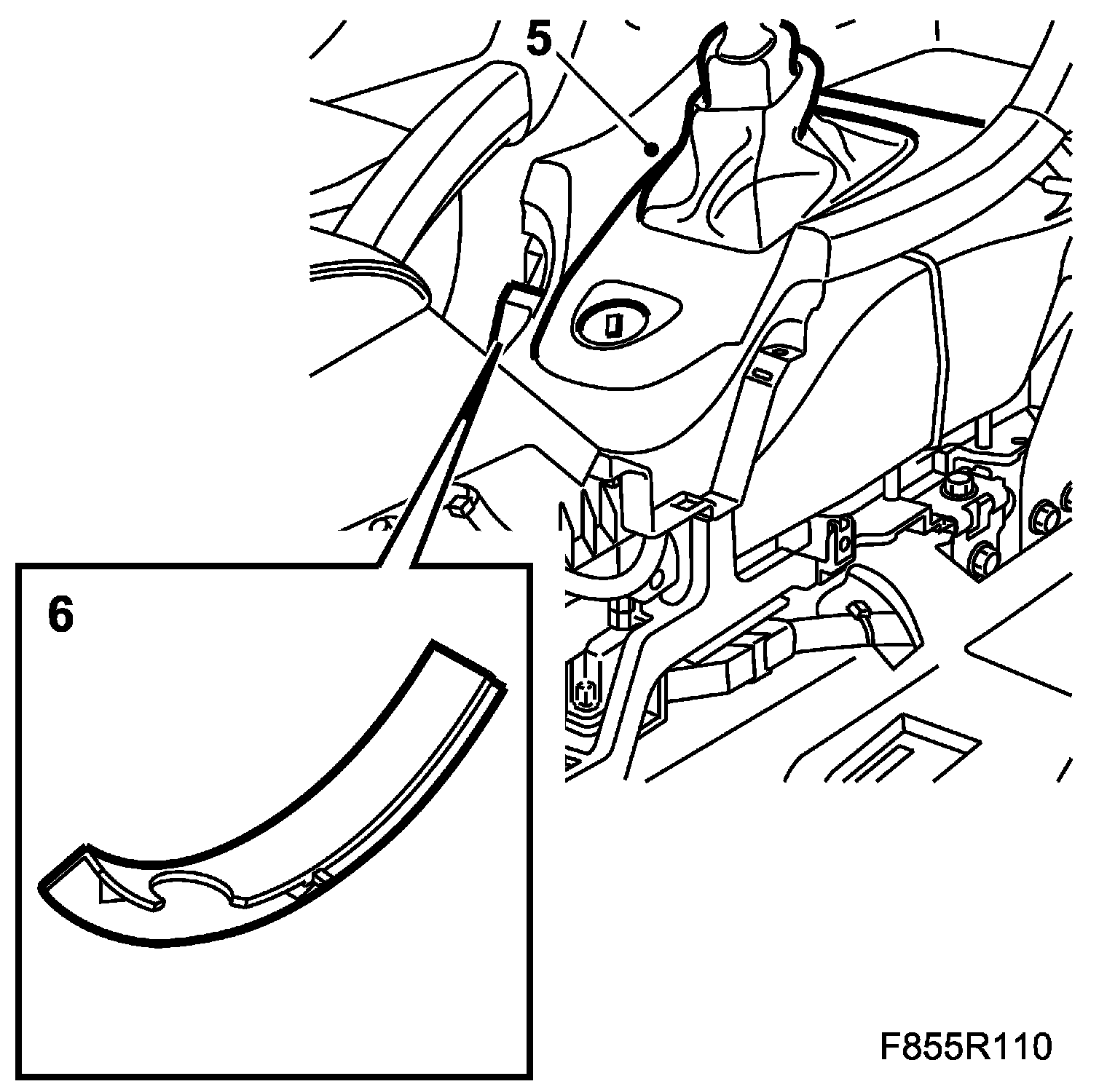 4. Remove the cover over the gear lever housing using 82 93 474 Removal tool in the rear edge of the cover and pulling backwards.