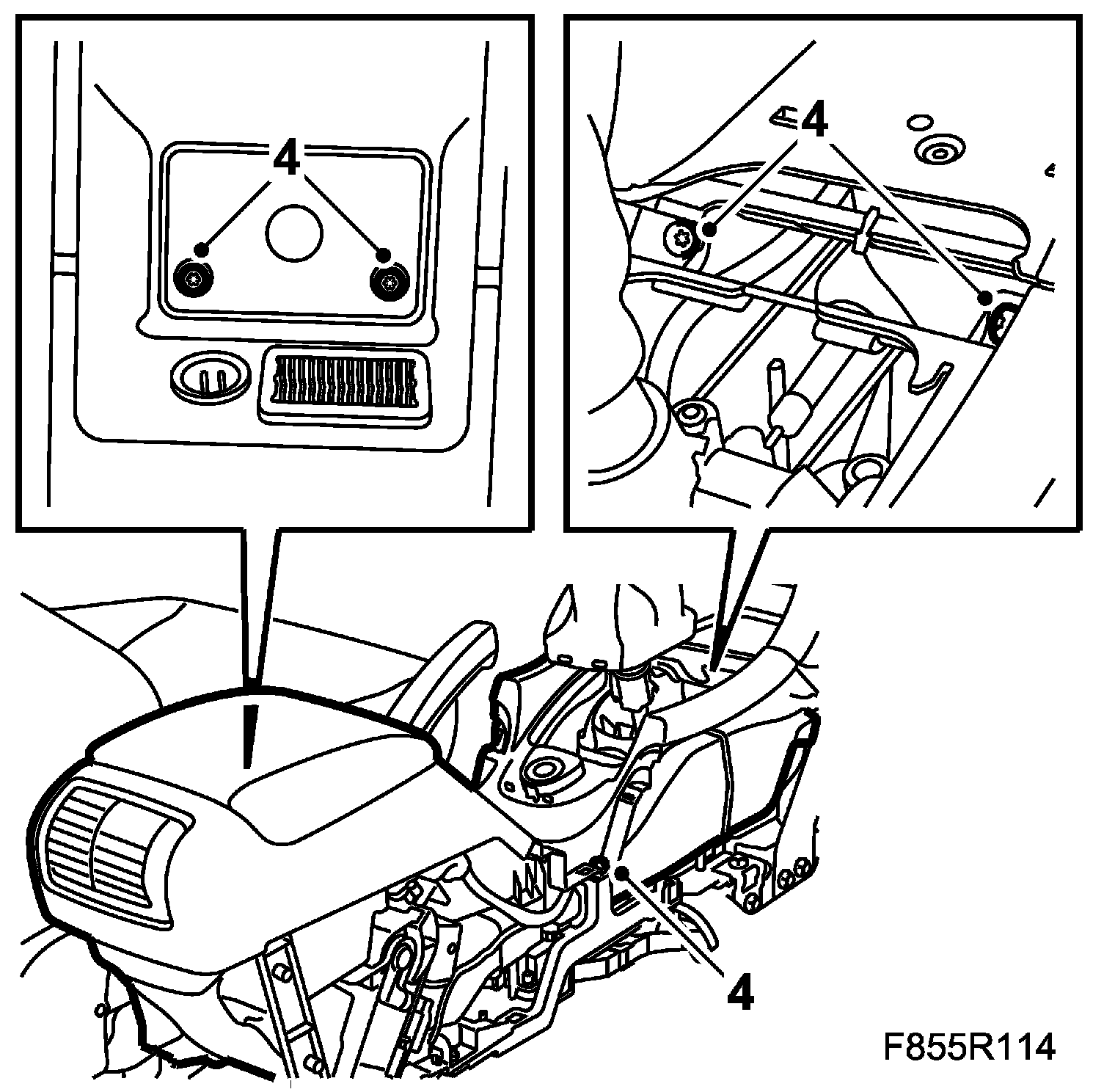 9. Remove the screws from the floor console. Note that the screws for plastic and aluminium are different.