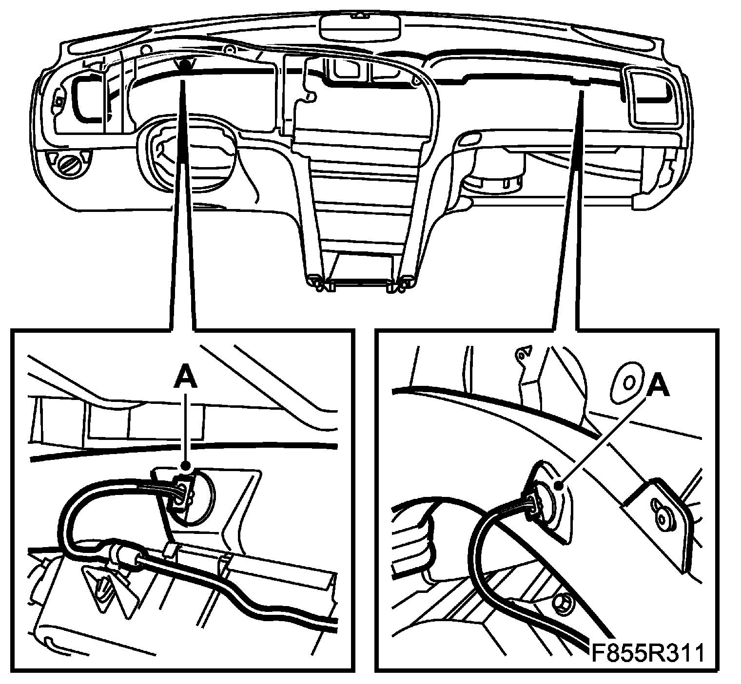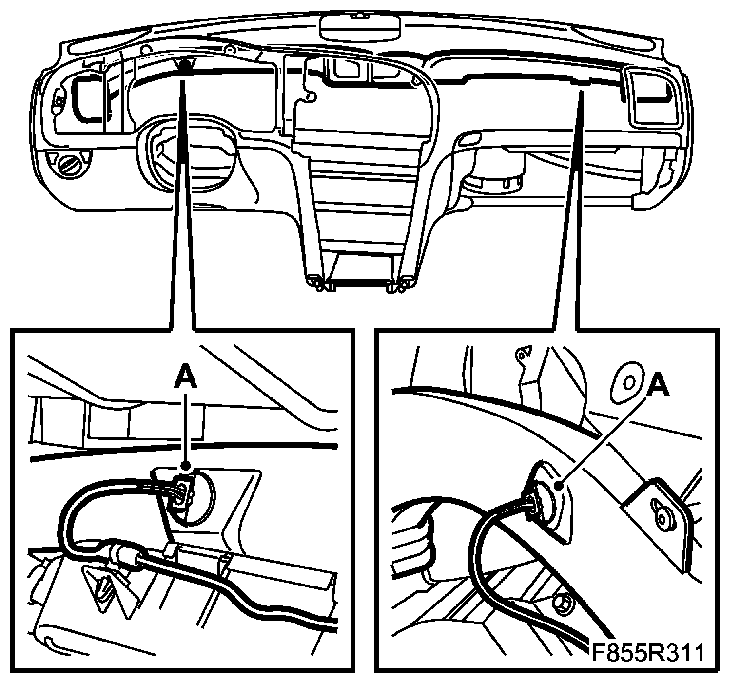 6. Fit the temperature sensors (A) to the panel vents on the driver and passenger sides.