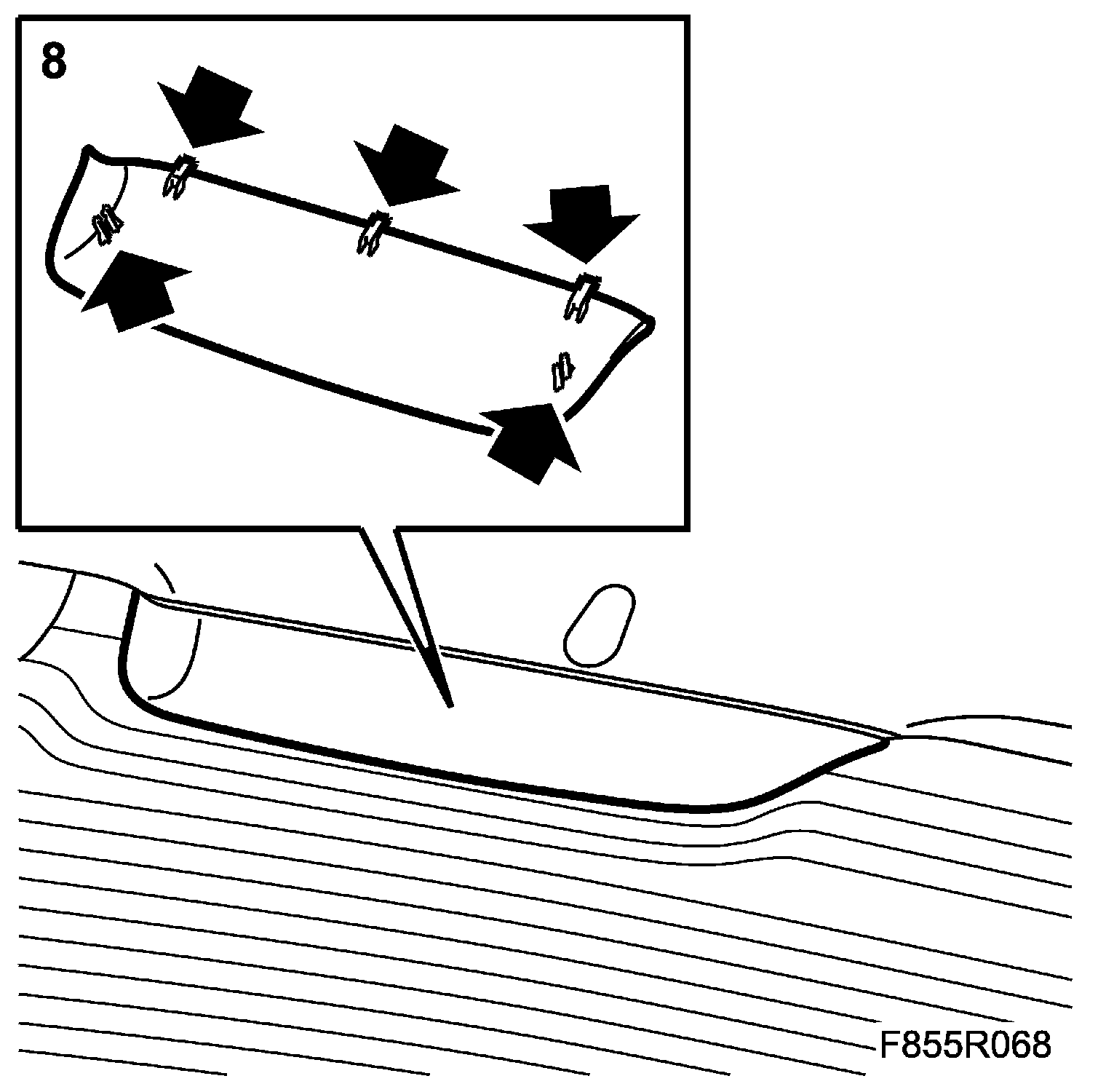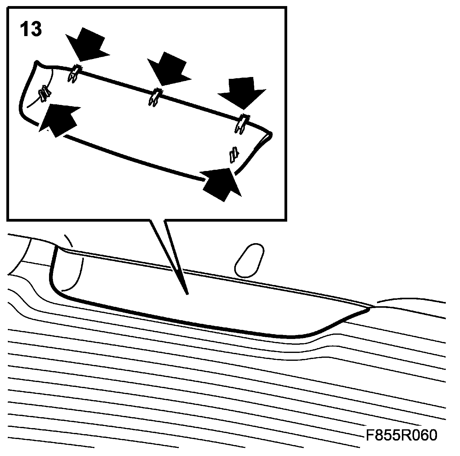Position the sunroof trim moulding and press it carefully so that it engages in the clips around the sunroof opening. Ensure that the headlining textile is stretched and correctly arranged.