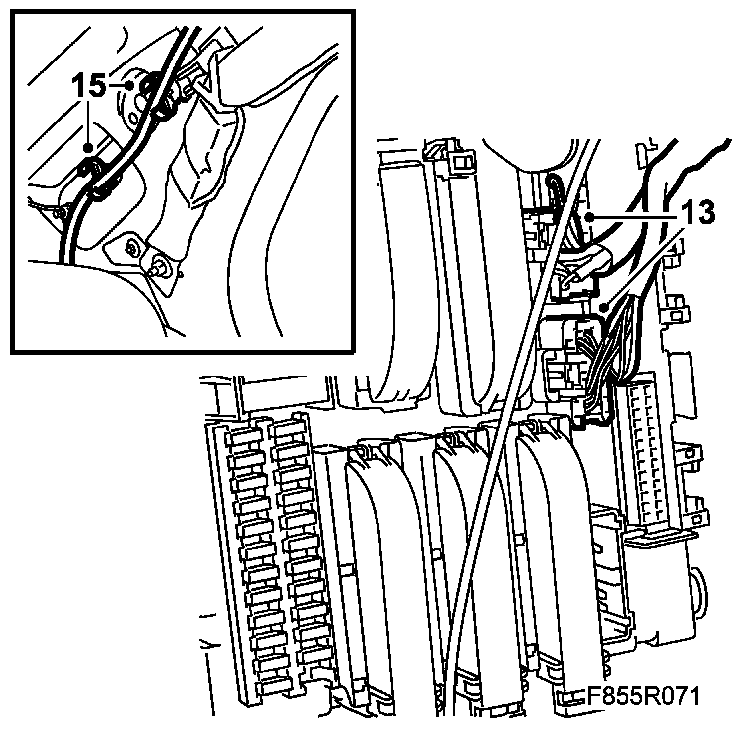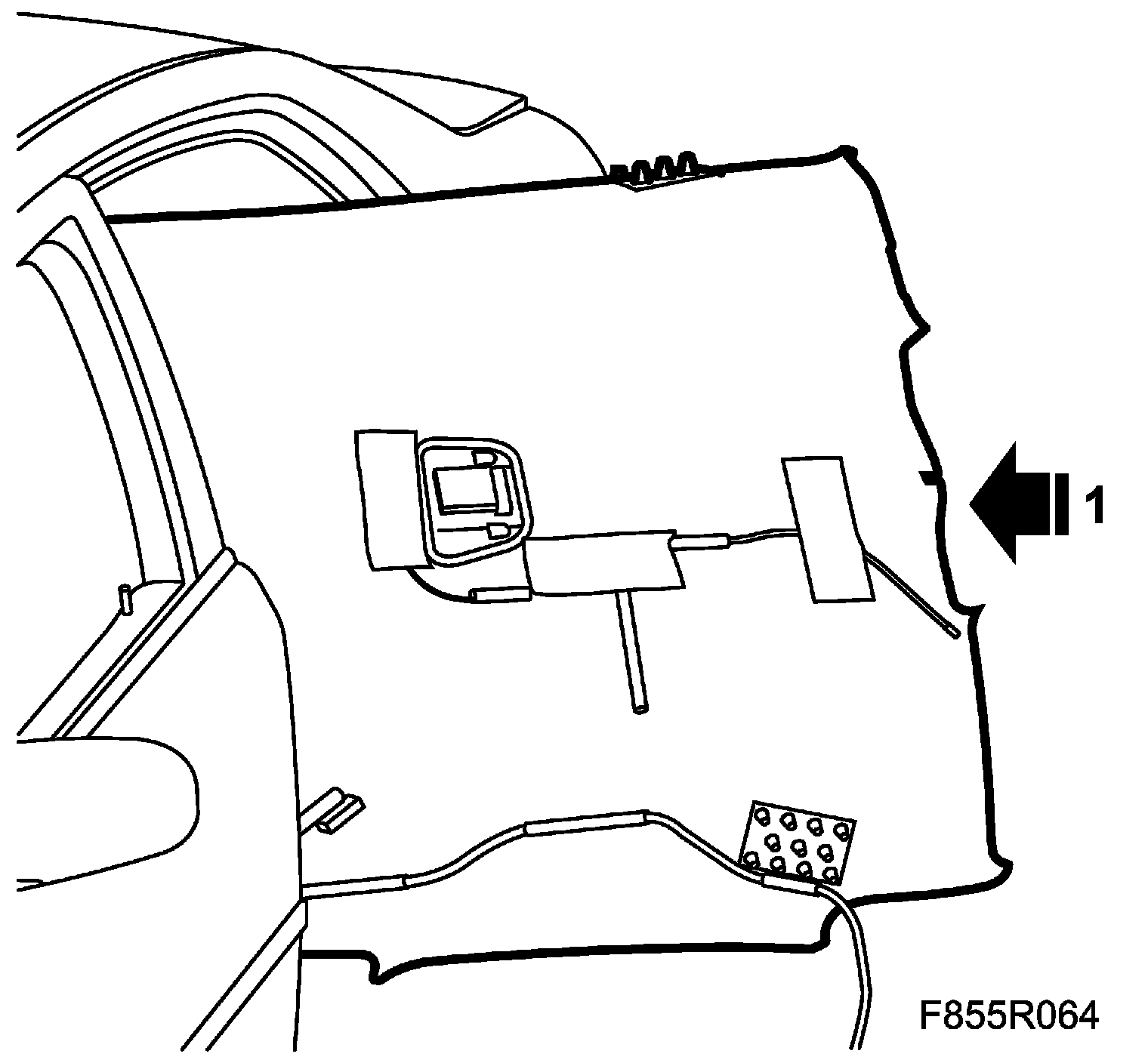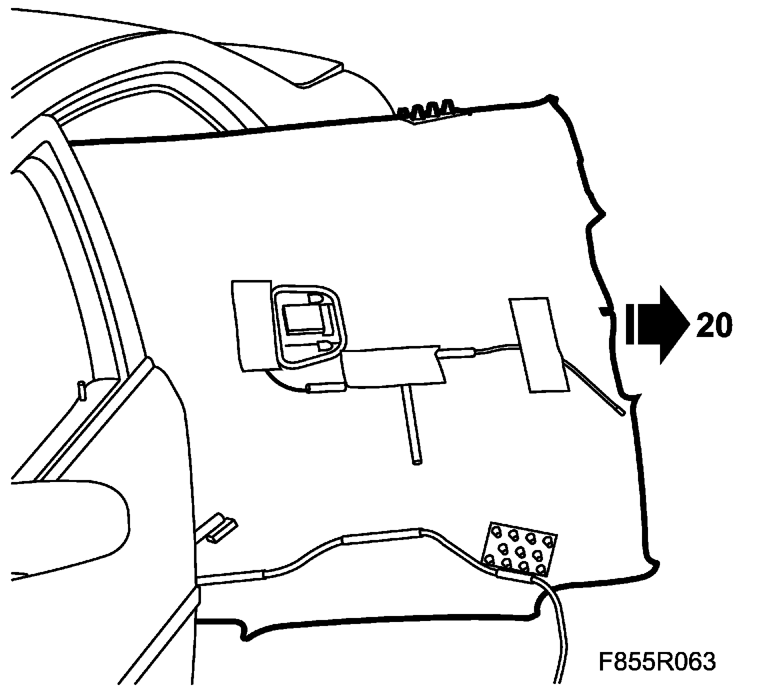 8. Disconnect the inner roof connector from the REC and thread the wiring harness up through the parcel shelf.