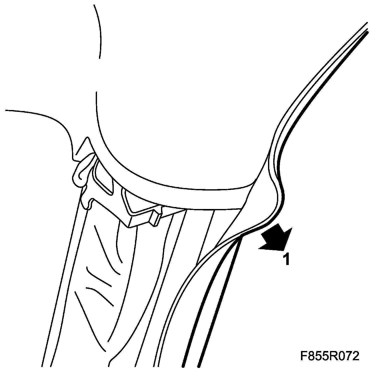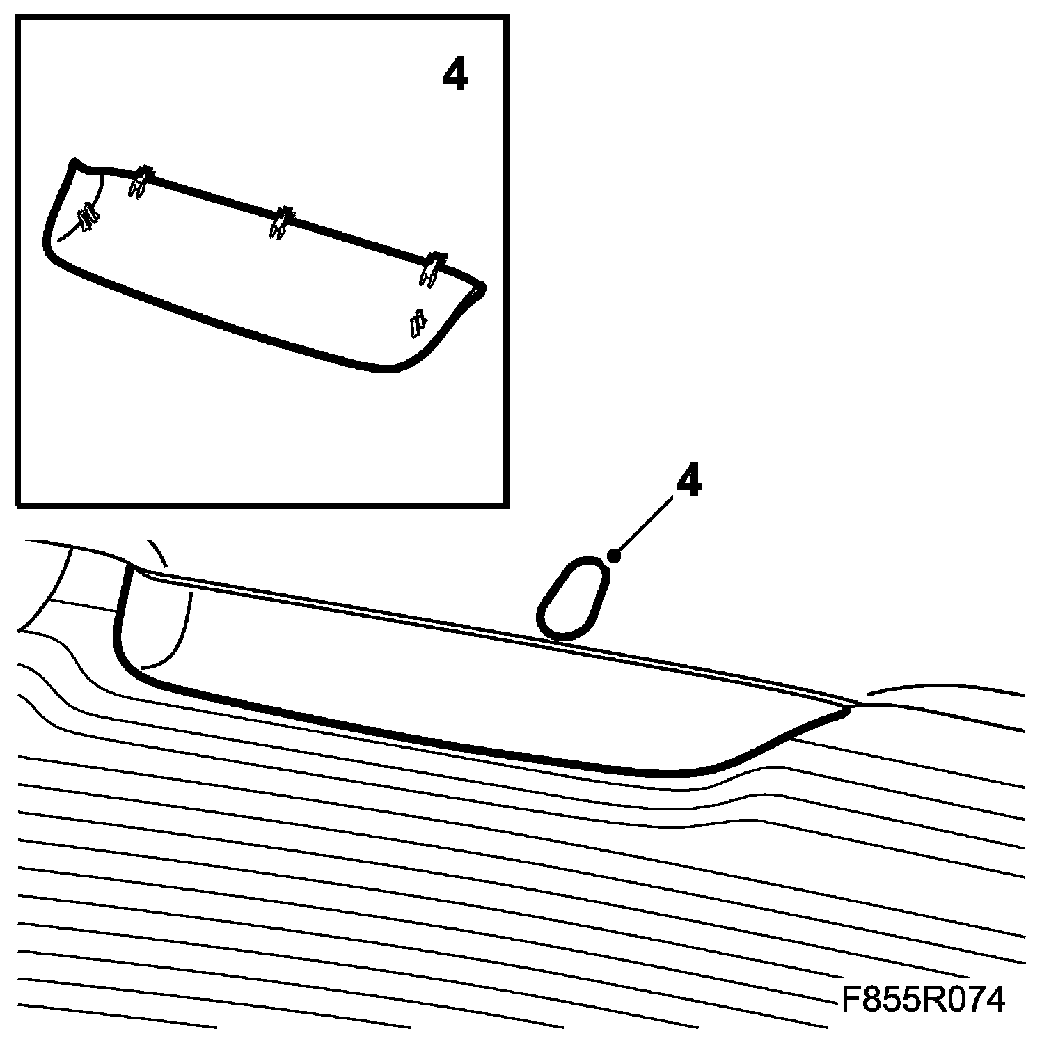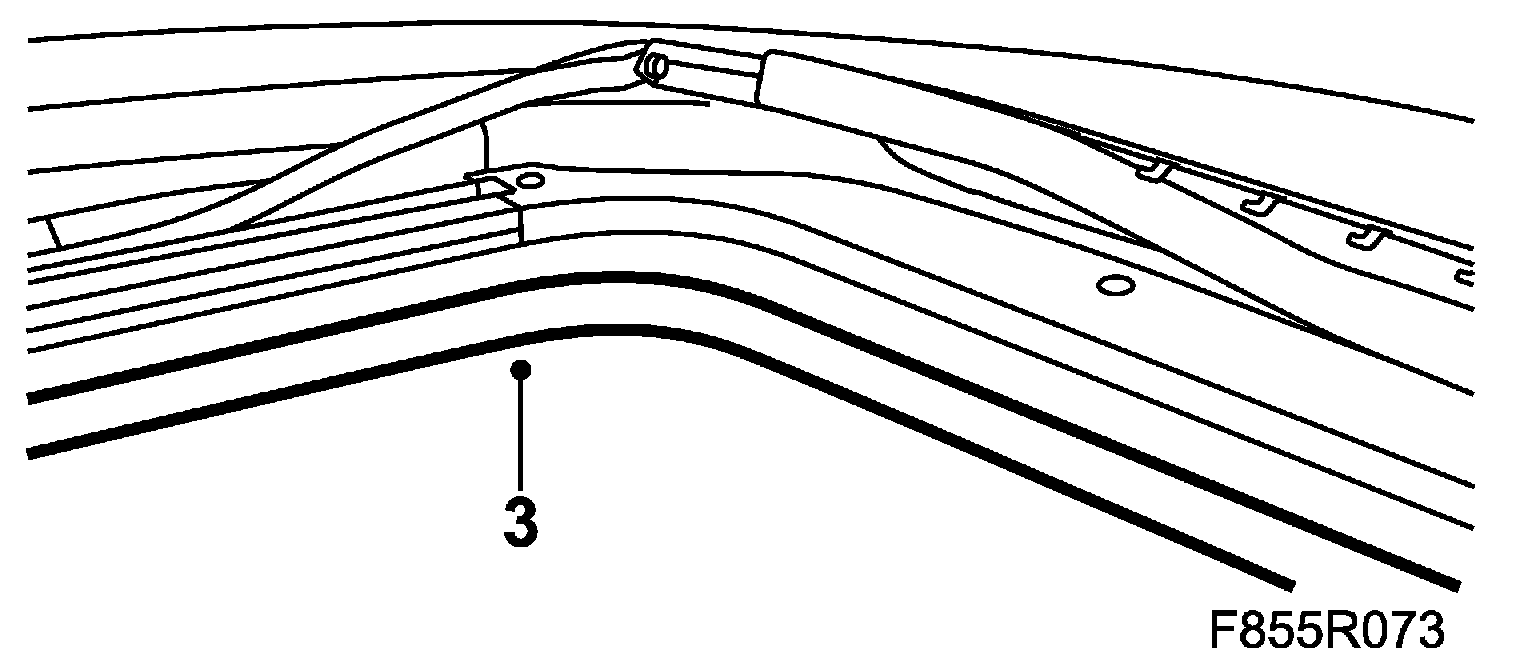 1. Attach the headlining by carefully pushing the outer edges upwards so that the clips engage. Adjust the weather strips so that they are correctly positioned.