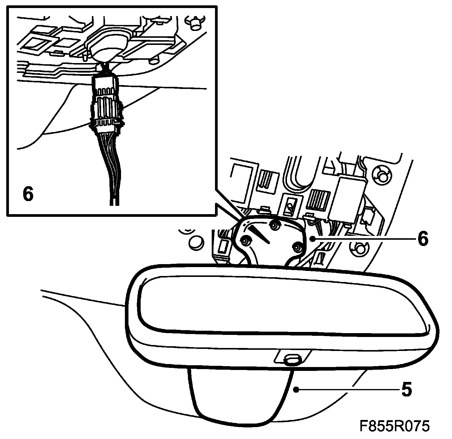 6. Plug in the rear-view mirror connector and fit the mirror.