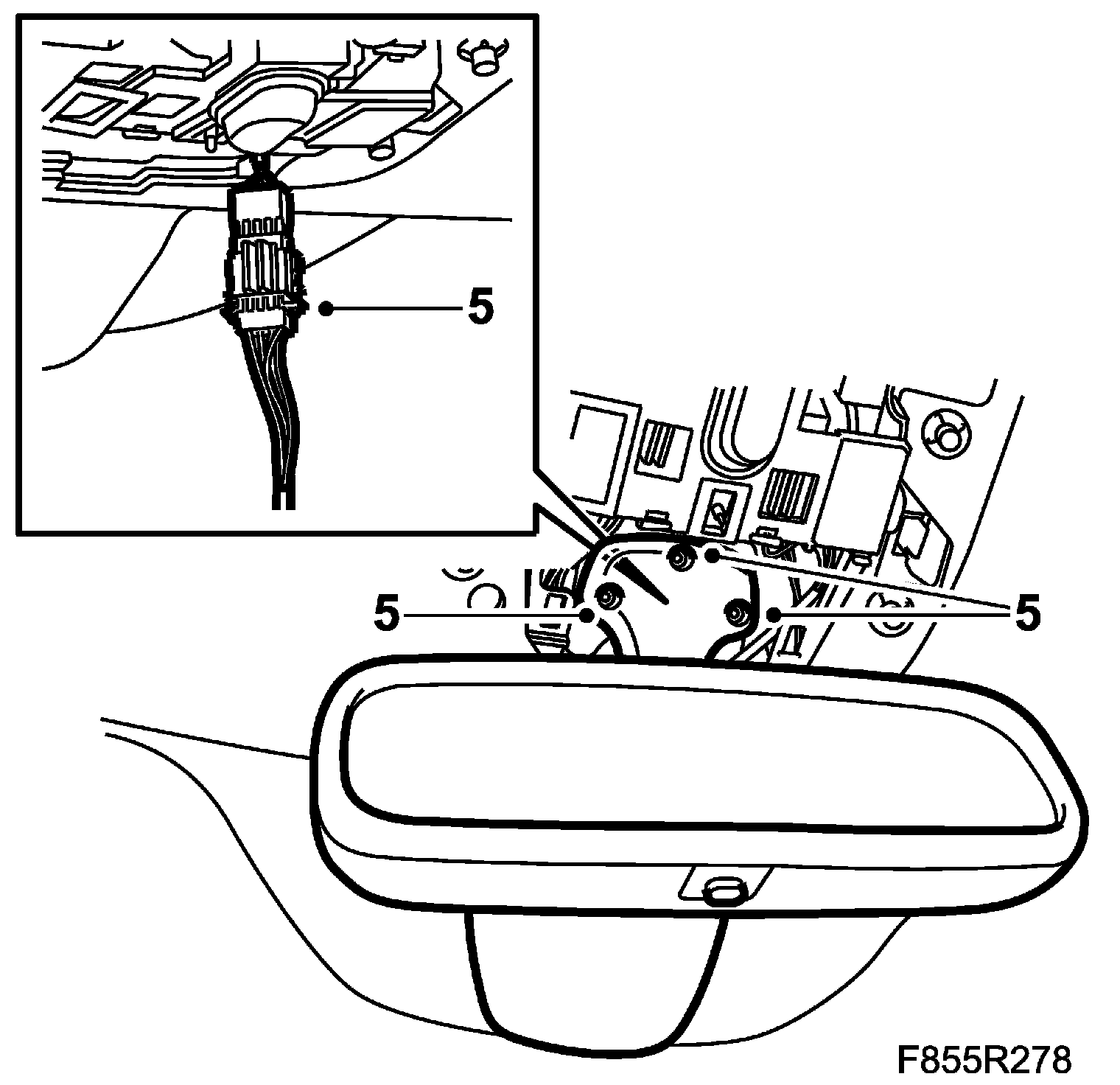 5. Detach the rear-view mirror and, where appropriate, unplug its connector.