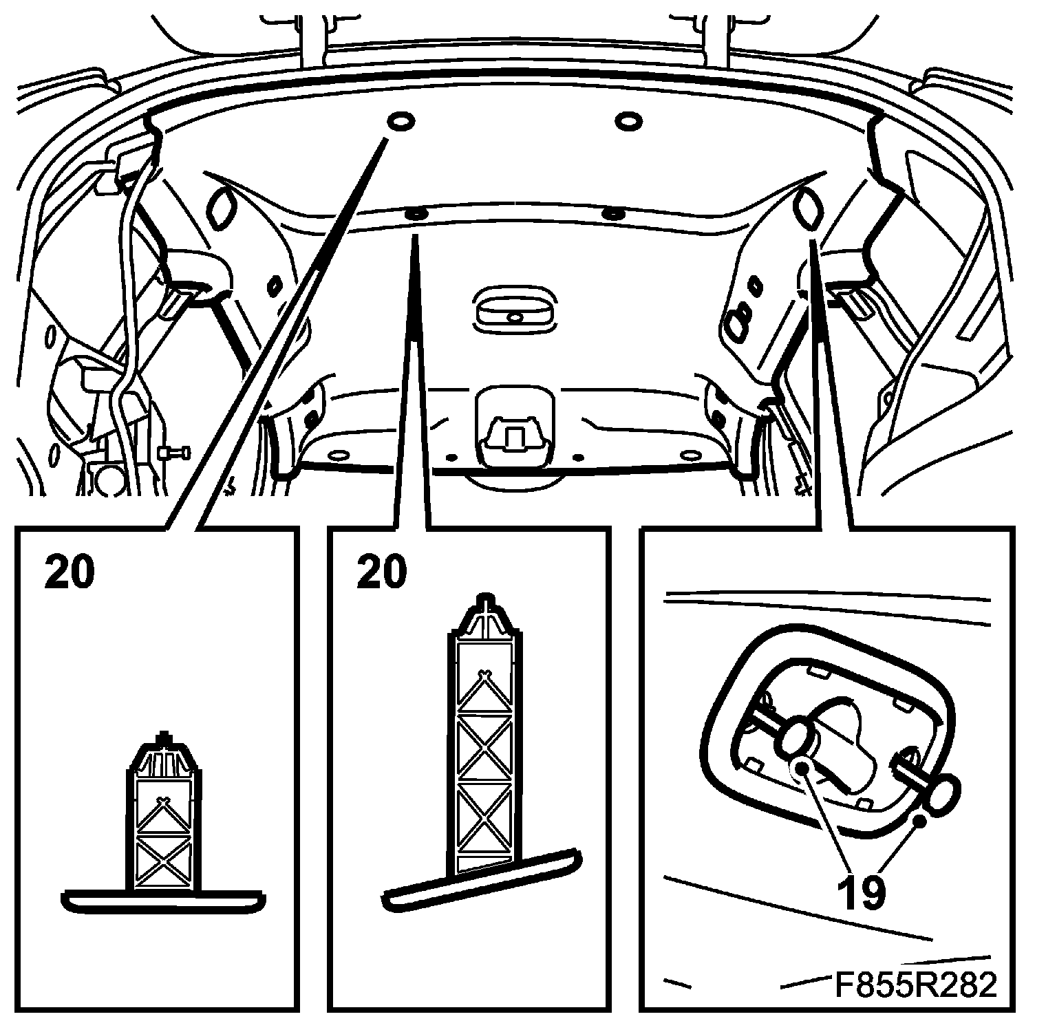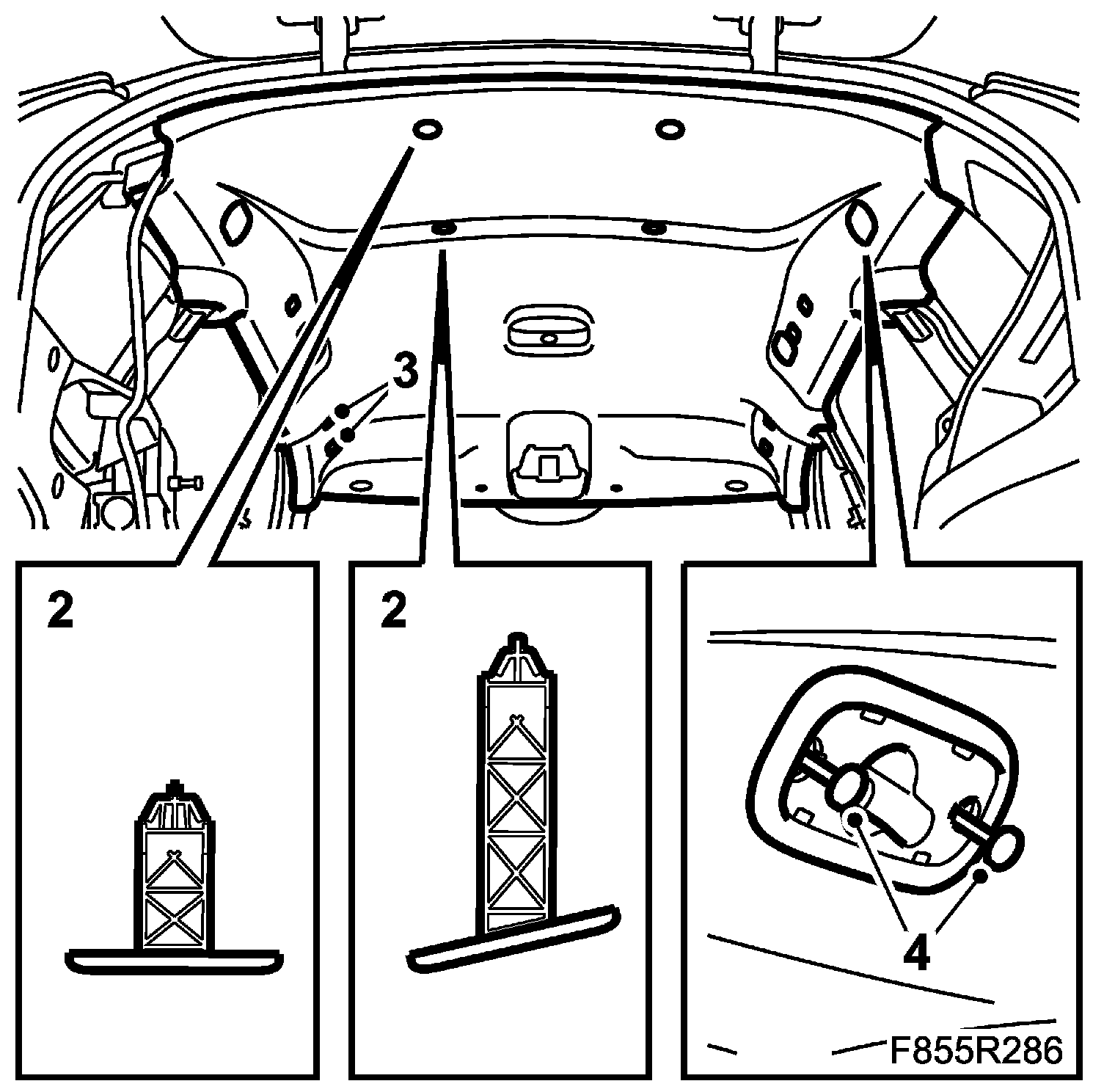 2. Fit the headlining clips. The clips are of different lengths. Fit the long ones at the front.
