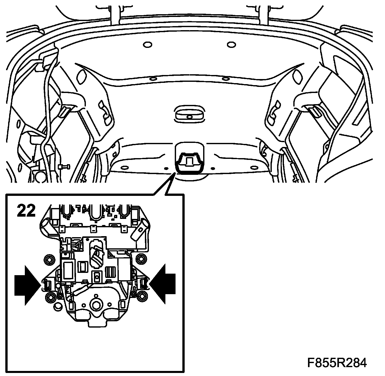 22. Undo the headlining front clips by pressing them in.