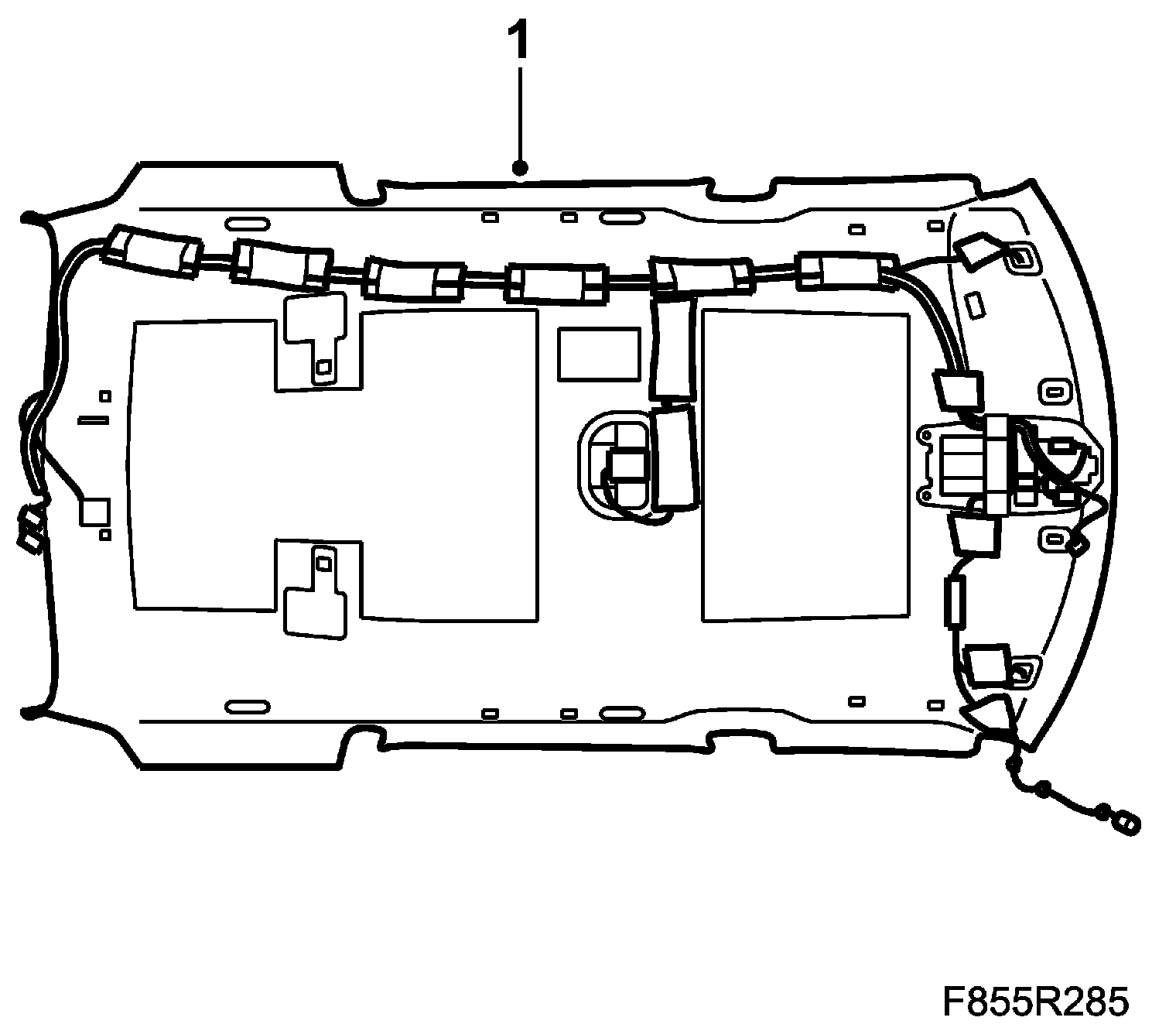 1. Fit the headlining by carefully pressing it up to fasten the clips. Make sure the headlining is fitted behind the trim on the right-hand side.