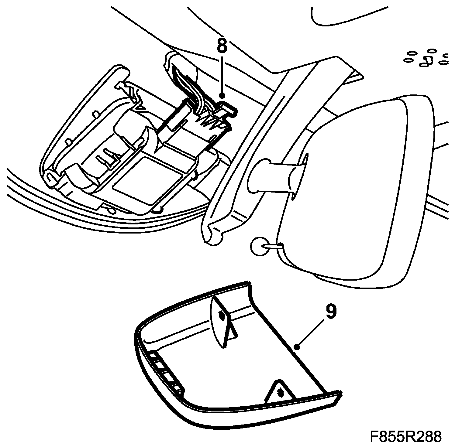 10. Fit the interior rear view mirror. Fit the connector where appropriate.