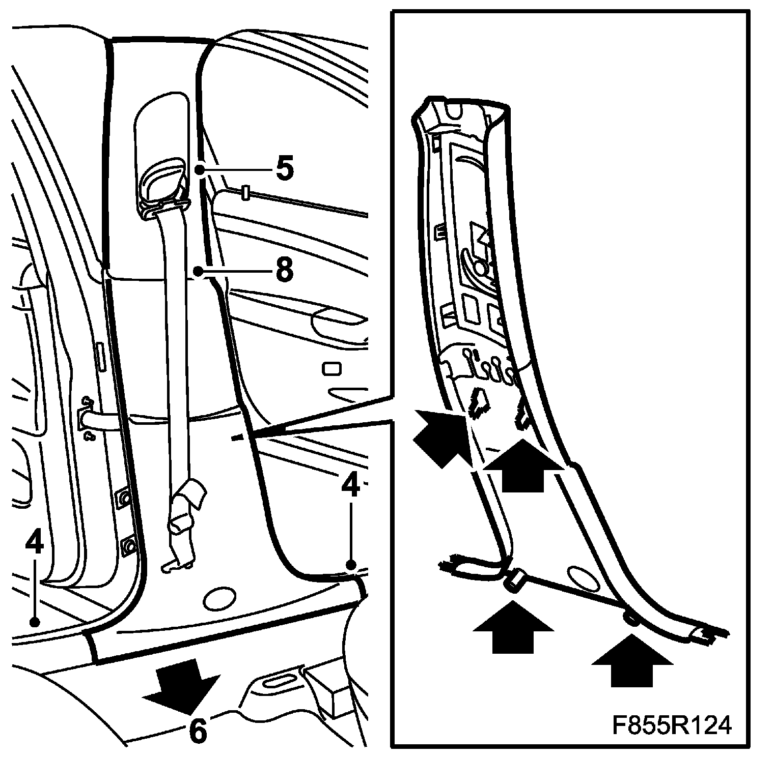 7. Move the B-pillar trim downwards.