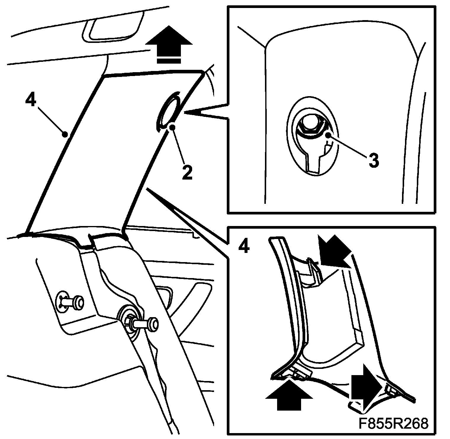 2. Remove the screw cover from the C-pillar trim. Use 82 93 474 Removal tool.