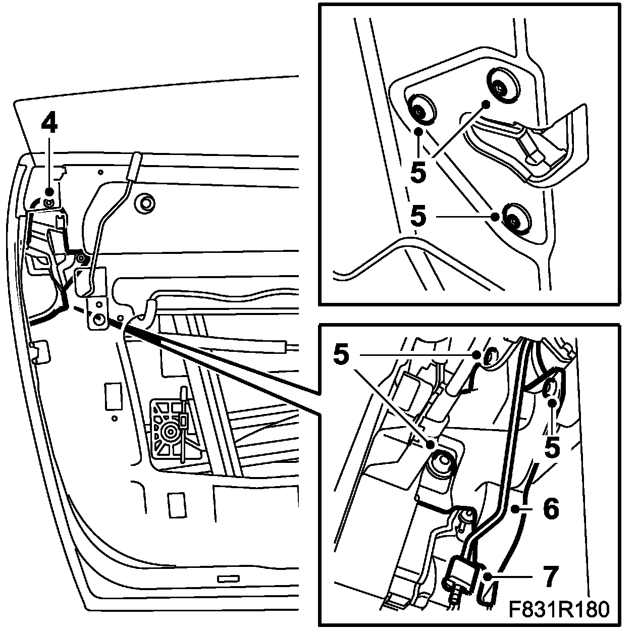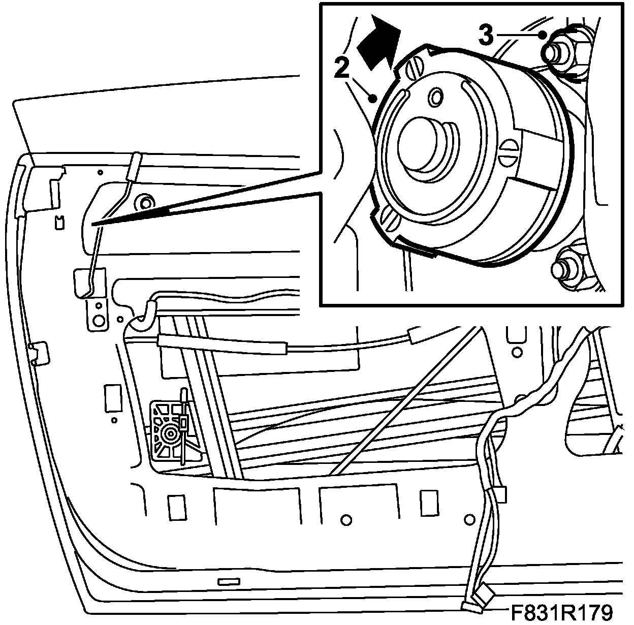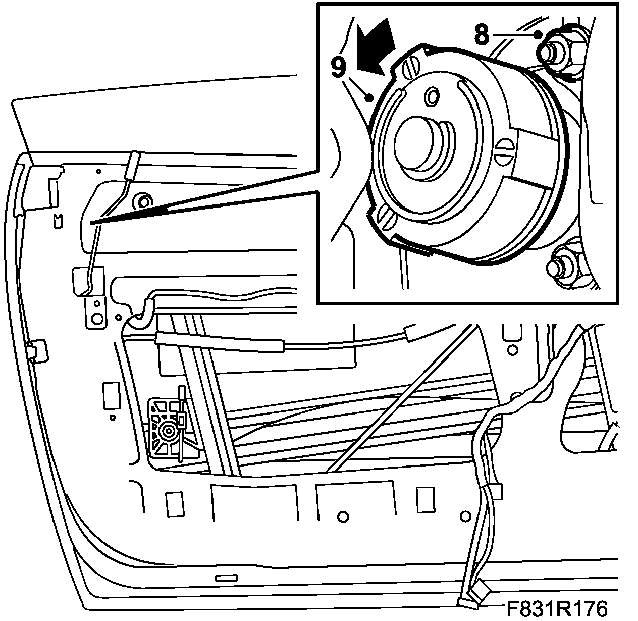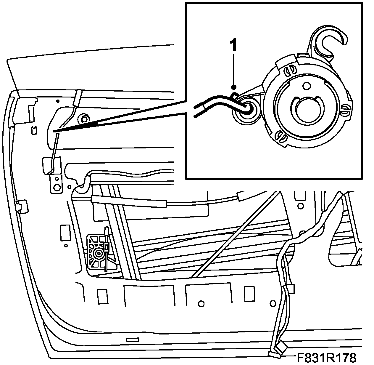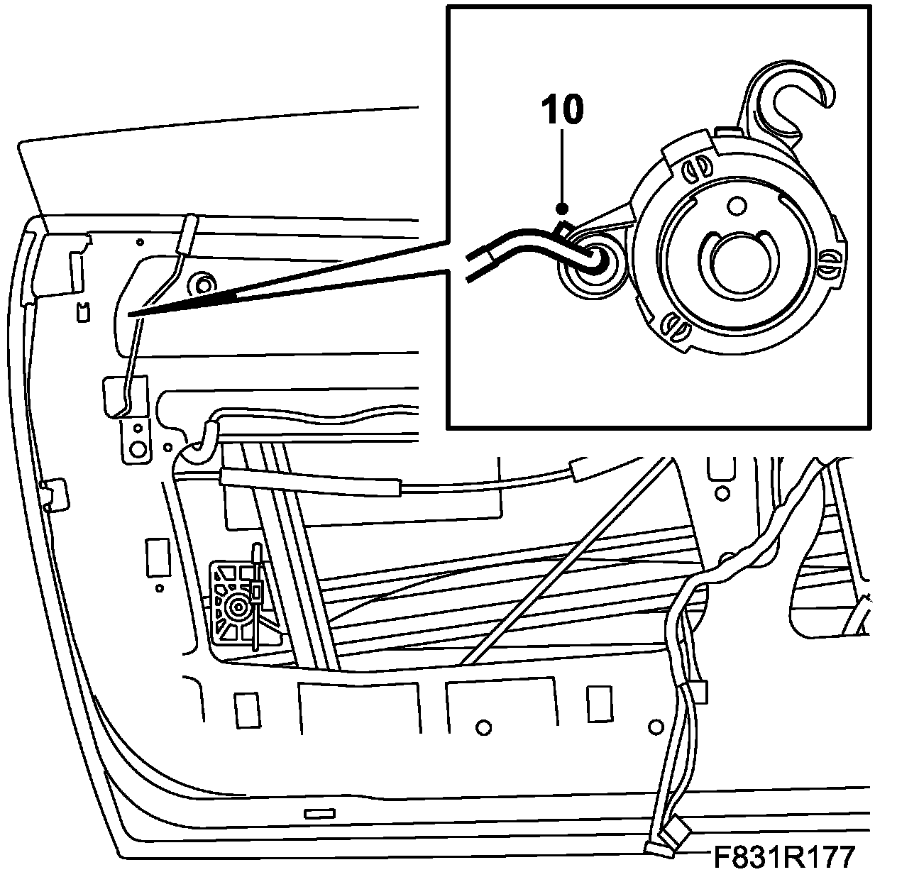 1. Lower the door window fully and then raise it roughly 10 cm. Remove Door trim, CV.