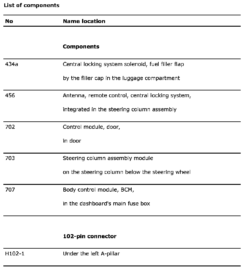 Central Locking System, Fuel Filler Flap