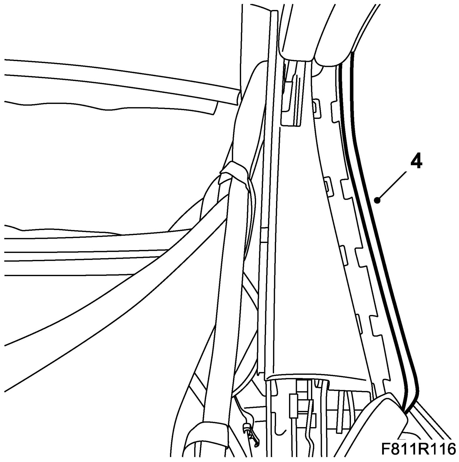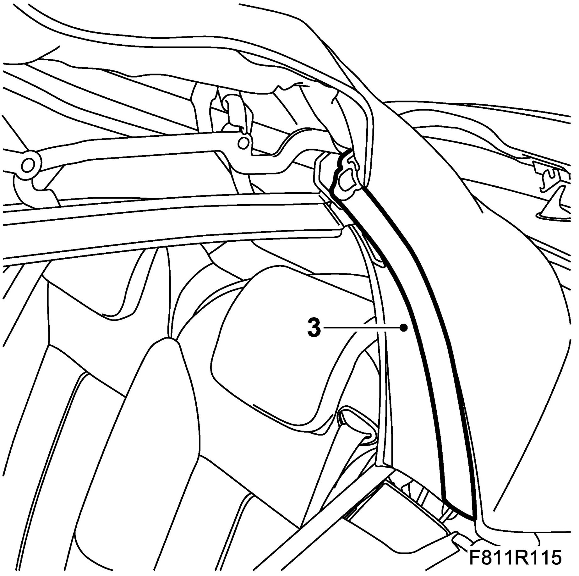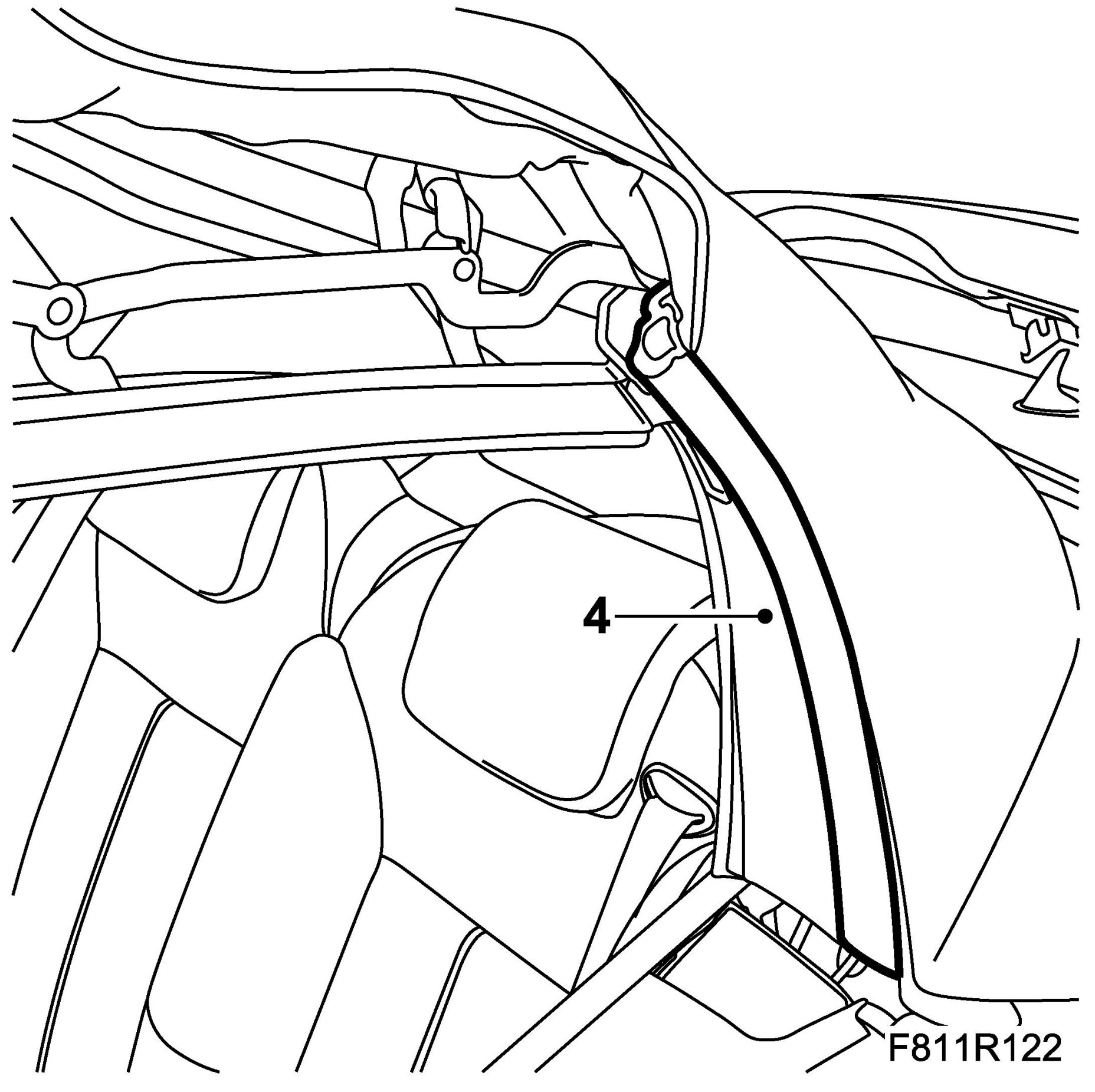 1. Remove the Headlining until the headlining plastic holder can be removed from the fourth bow.