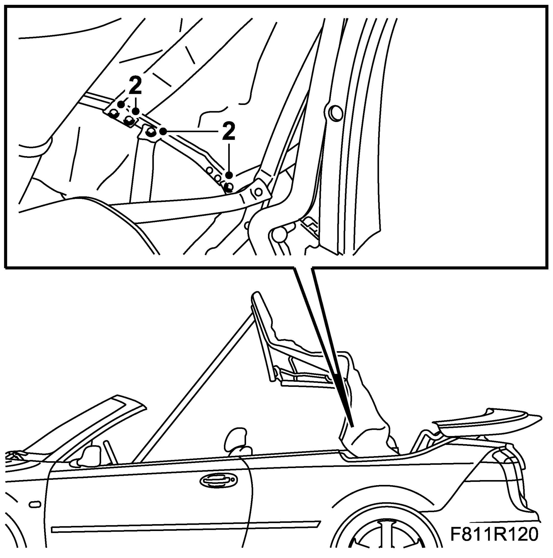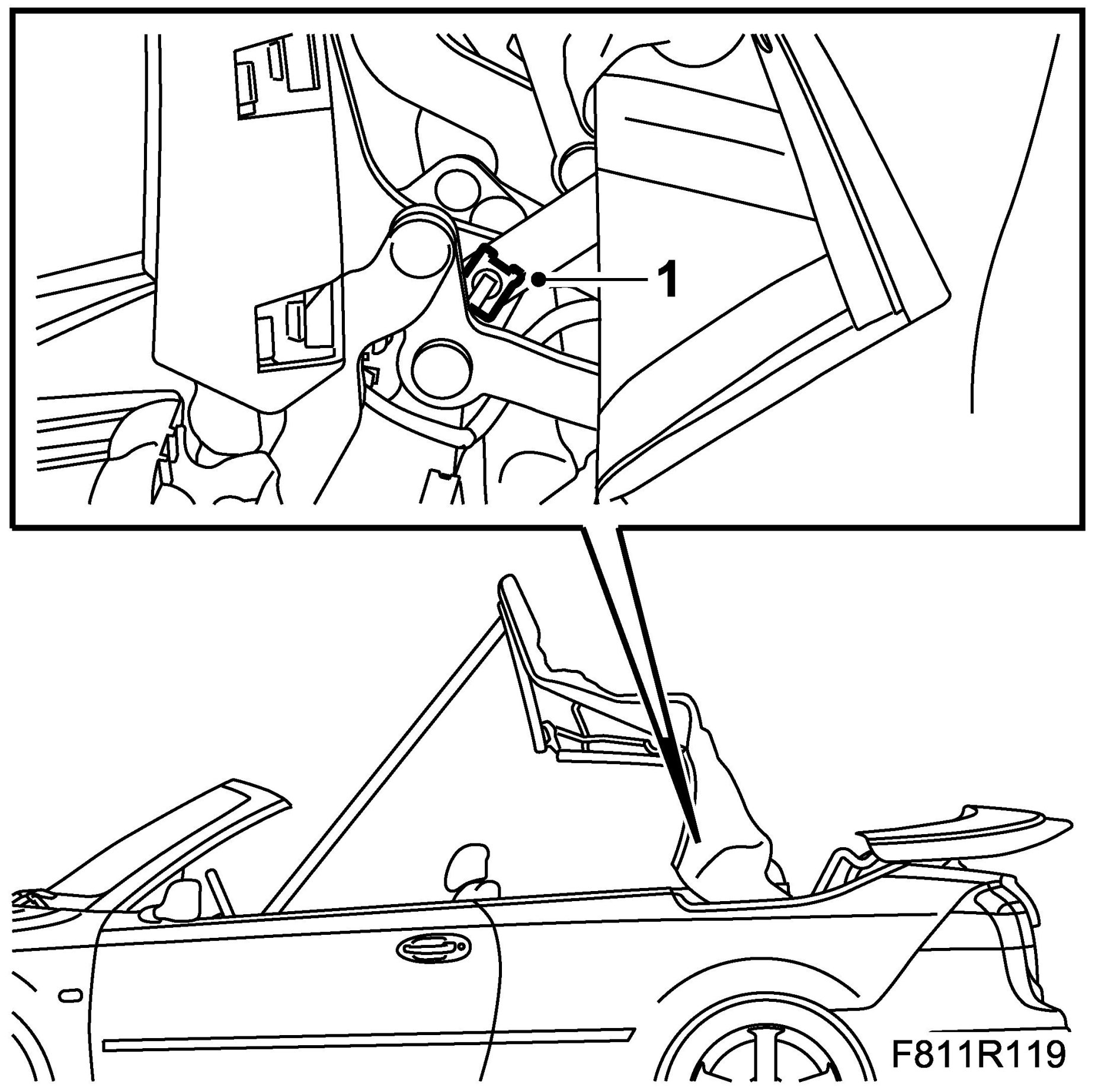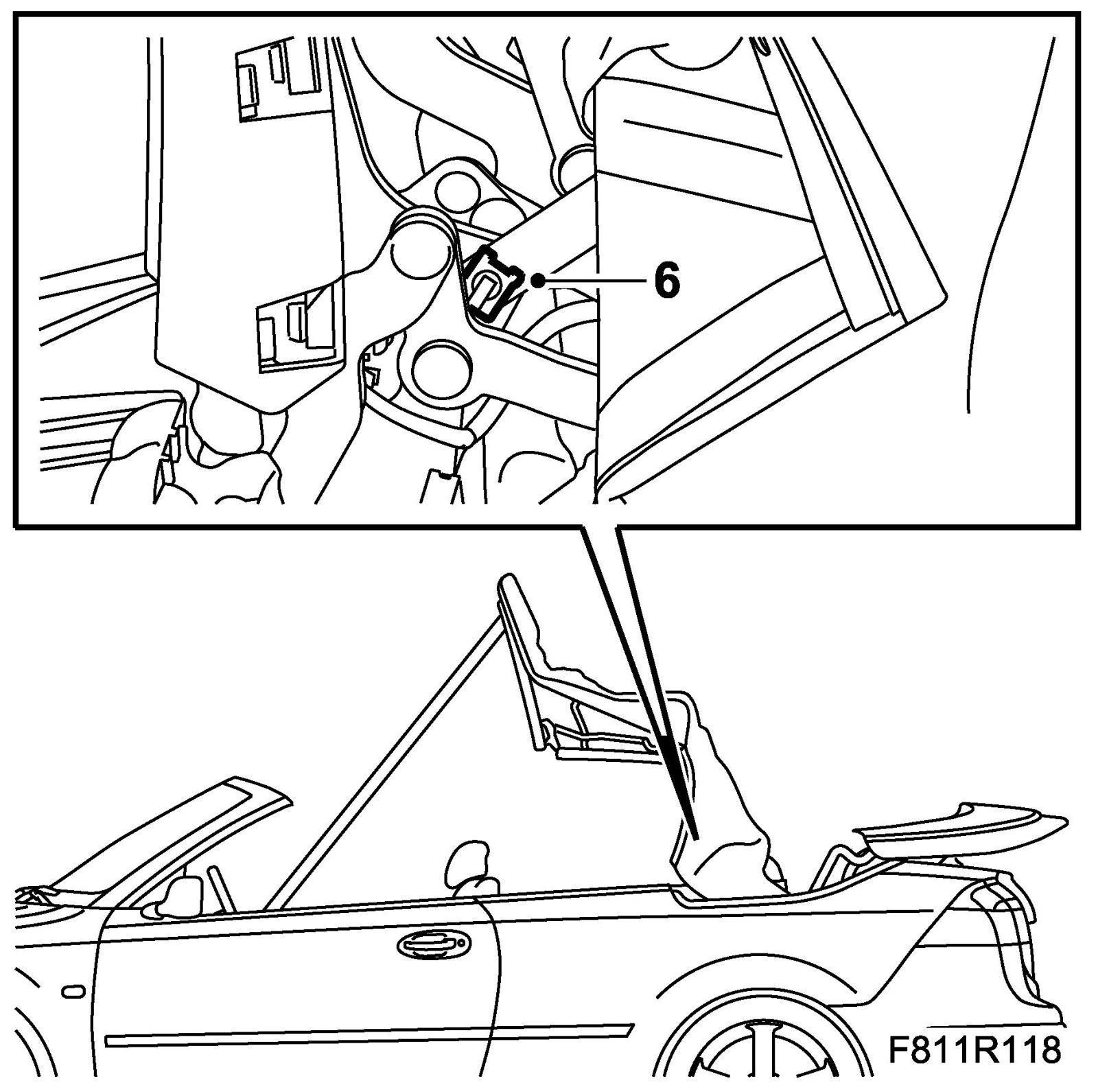 7. Operate the soft top half way down and secure it with the soft top support to prevent it falling down when the hydraulic pressure drops.