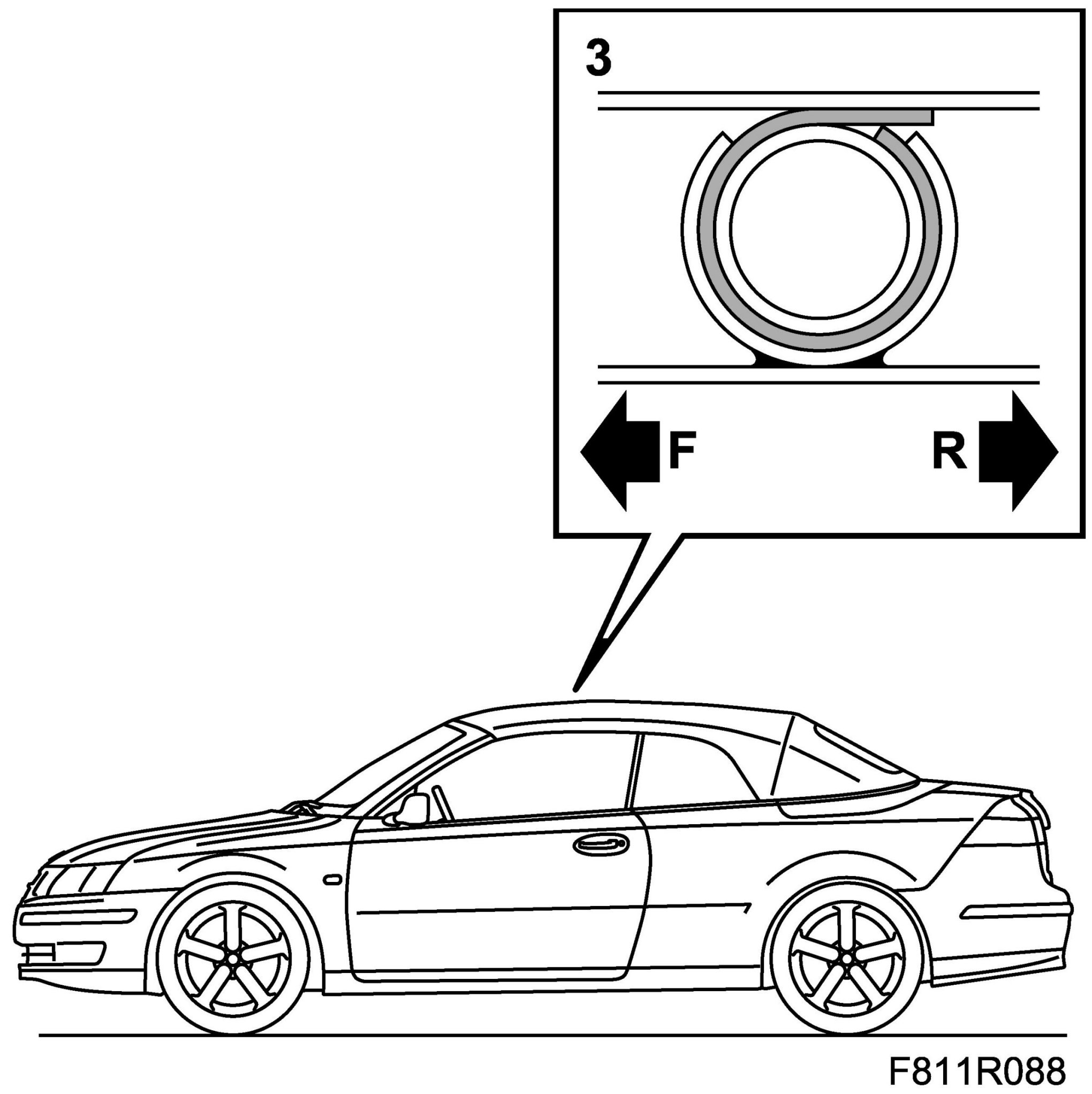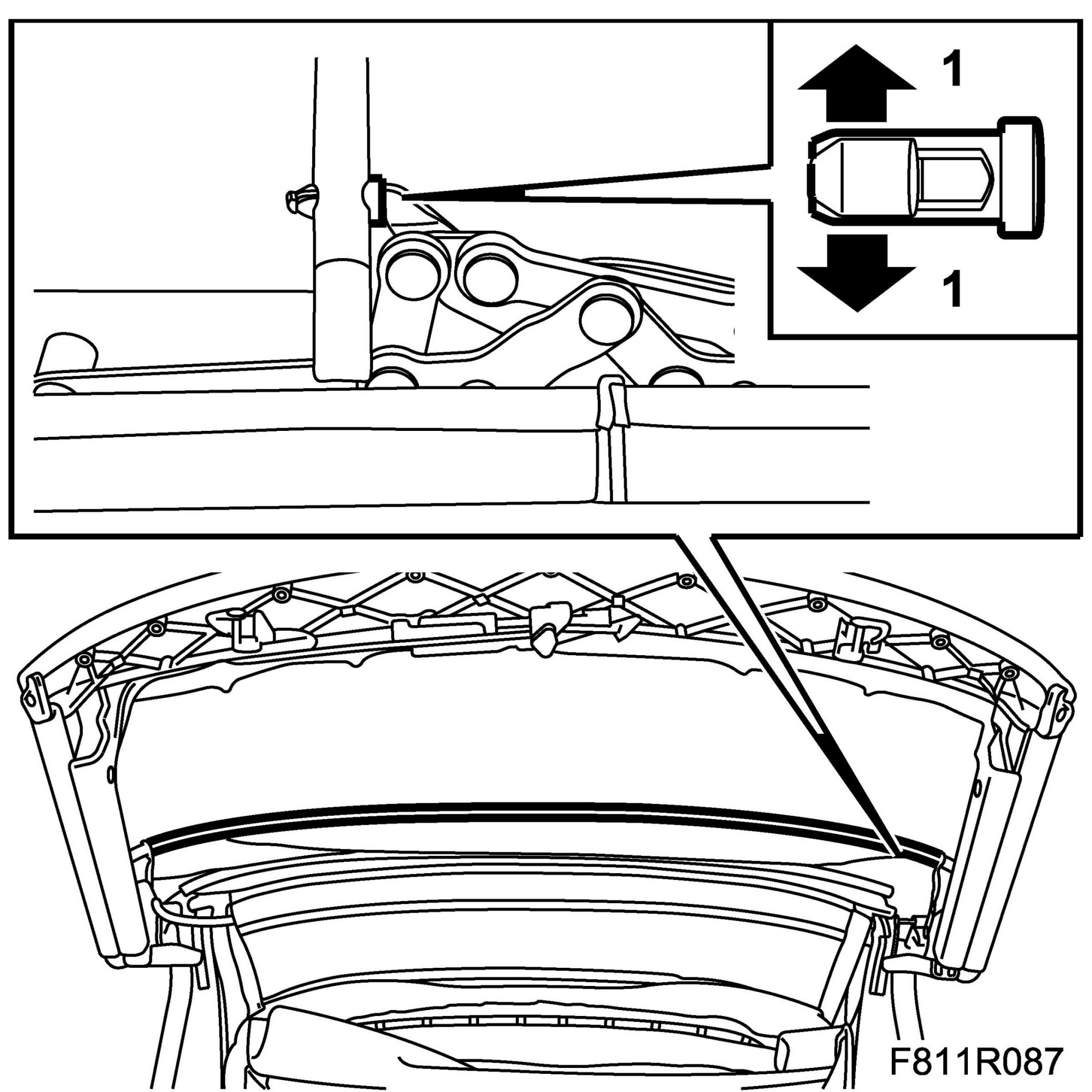 1. Remove the Headlining until the headlining's plastic holder can be taken off the second bow.