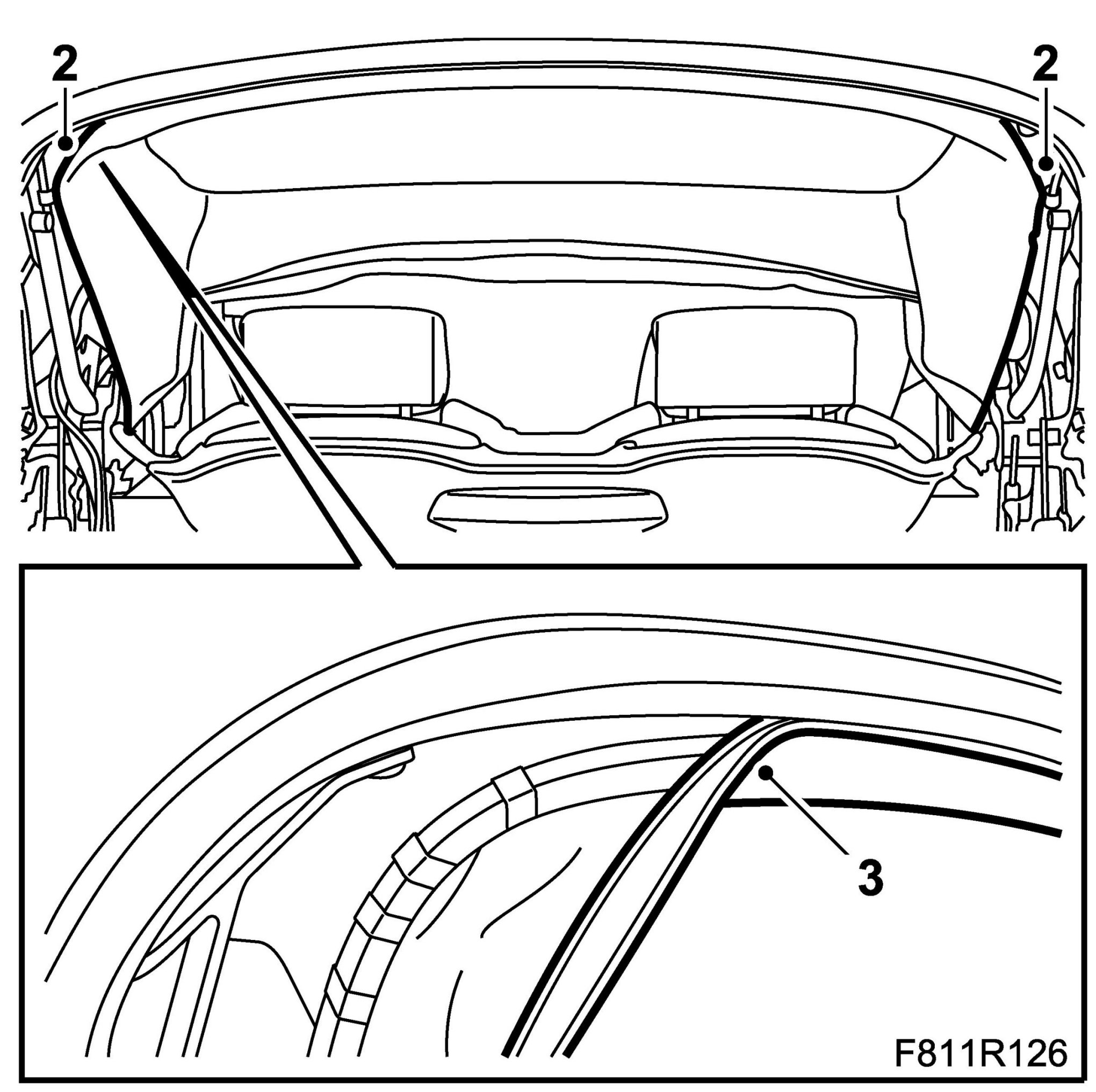 3. Remove the headlining edge reinforcing profile by pulling it out of the groove.