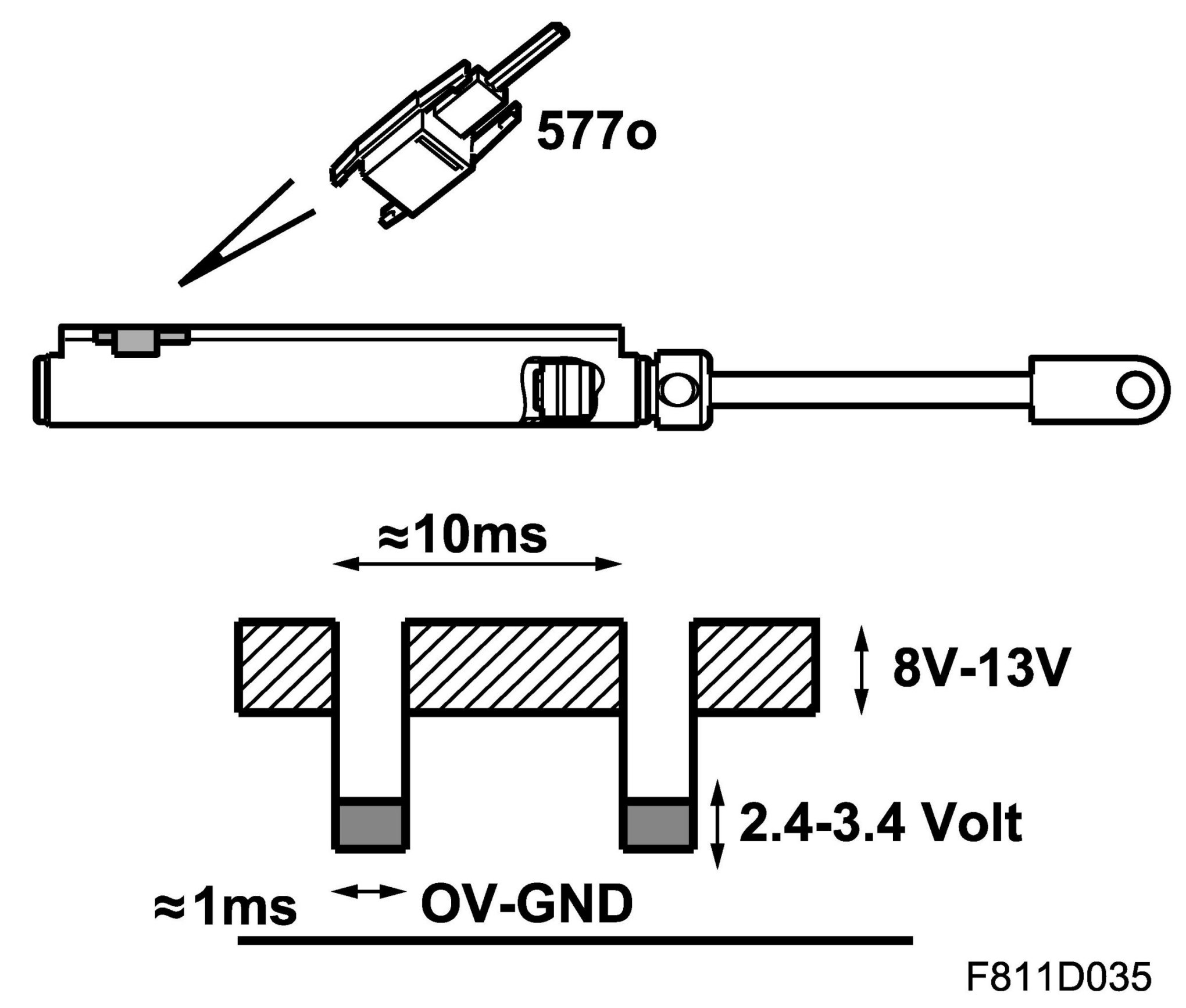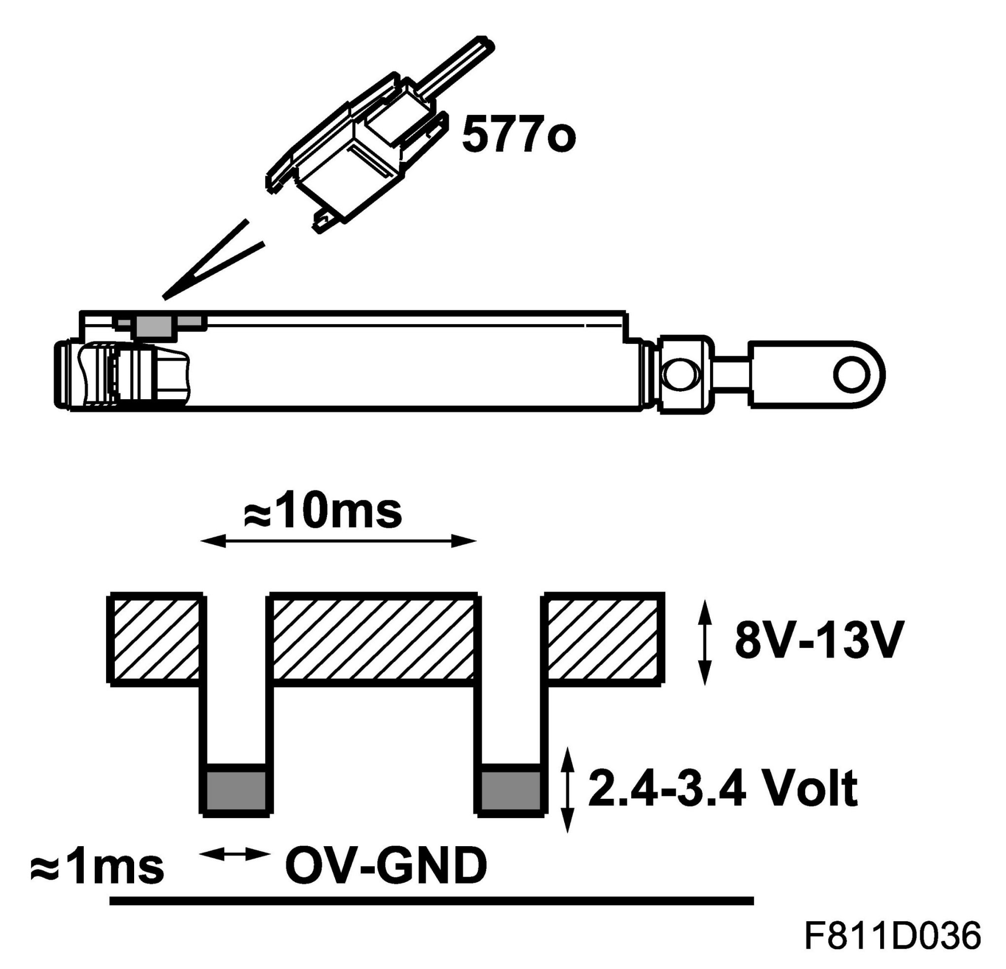 The sensor is affected by the cylinder piston. The sensor is affected when the piston is in its innermost position and the soft top is lowered.