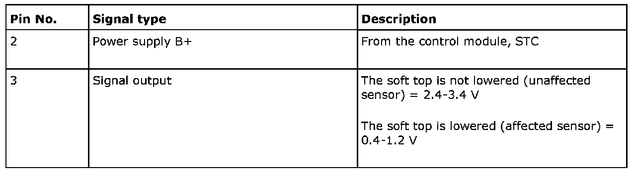 The sensor gives information to the STC control module indicating if the soft top is lowered.