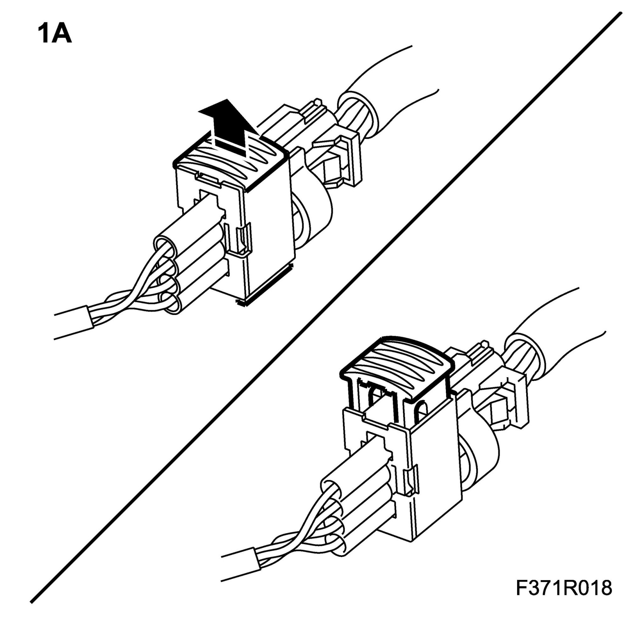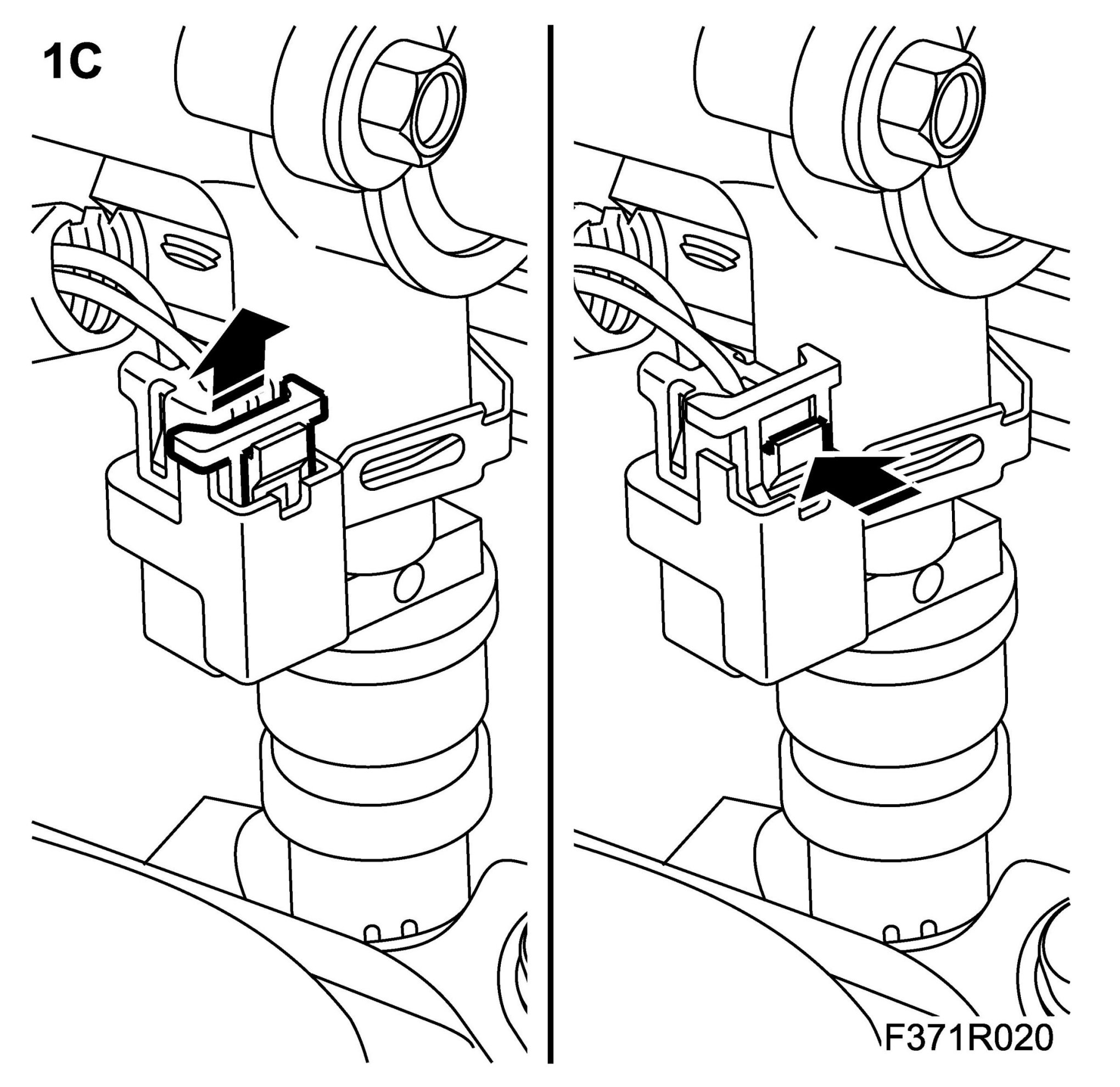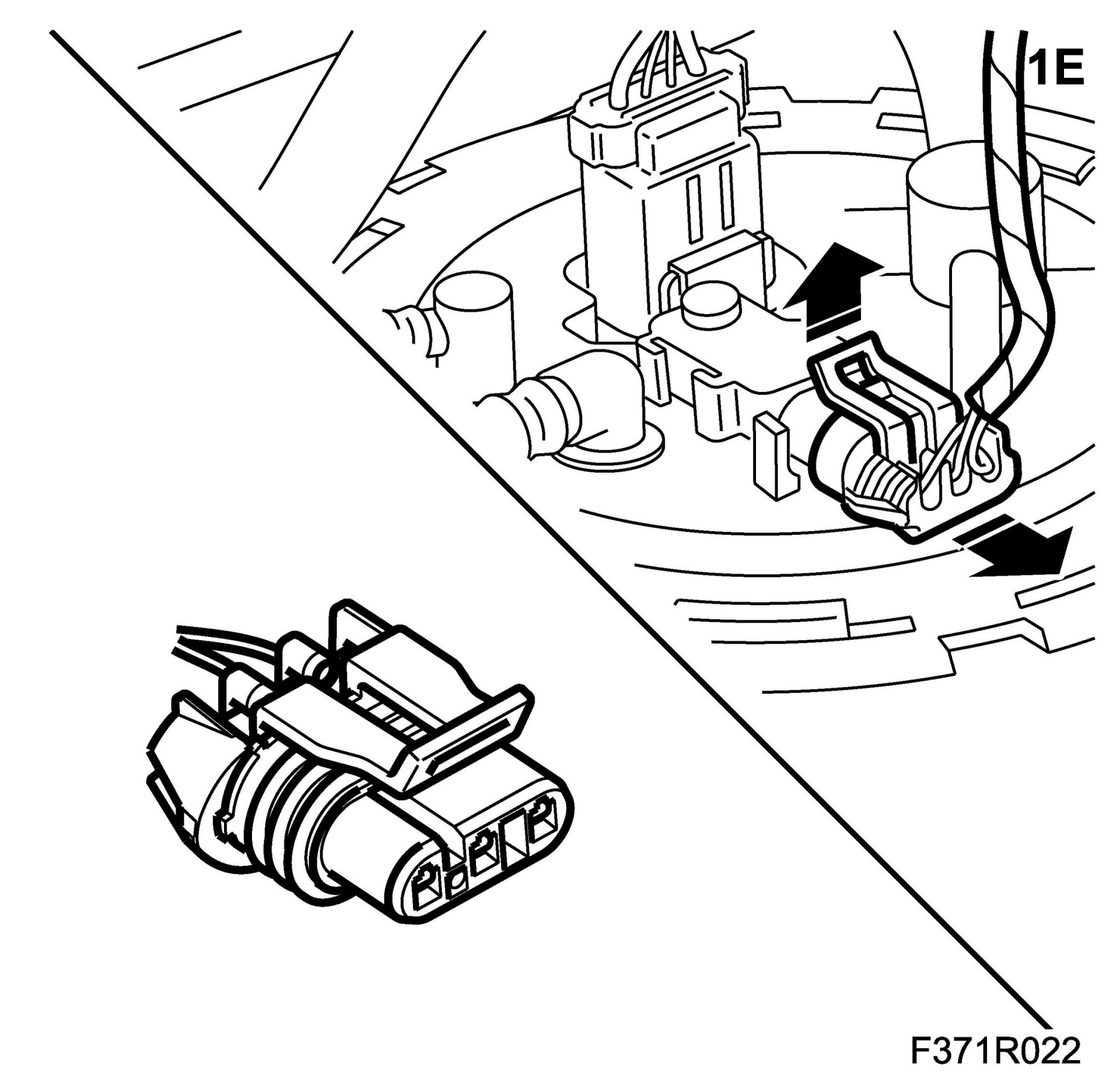 1.E. Lift up the lock tab to unlock the connector.