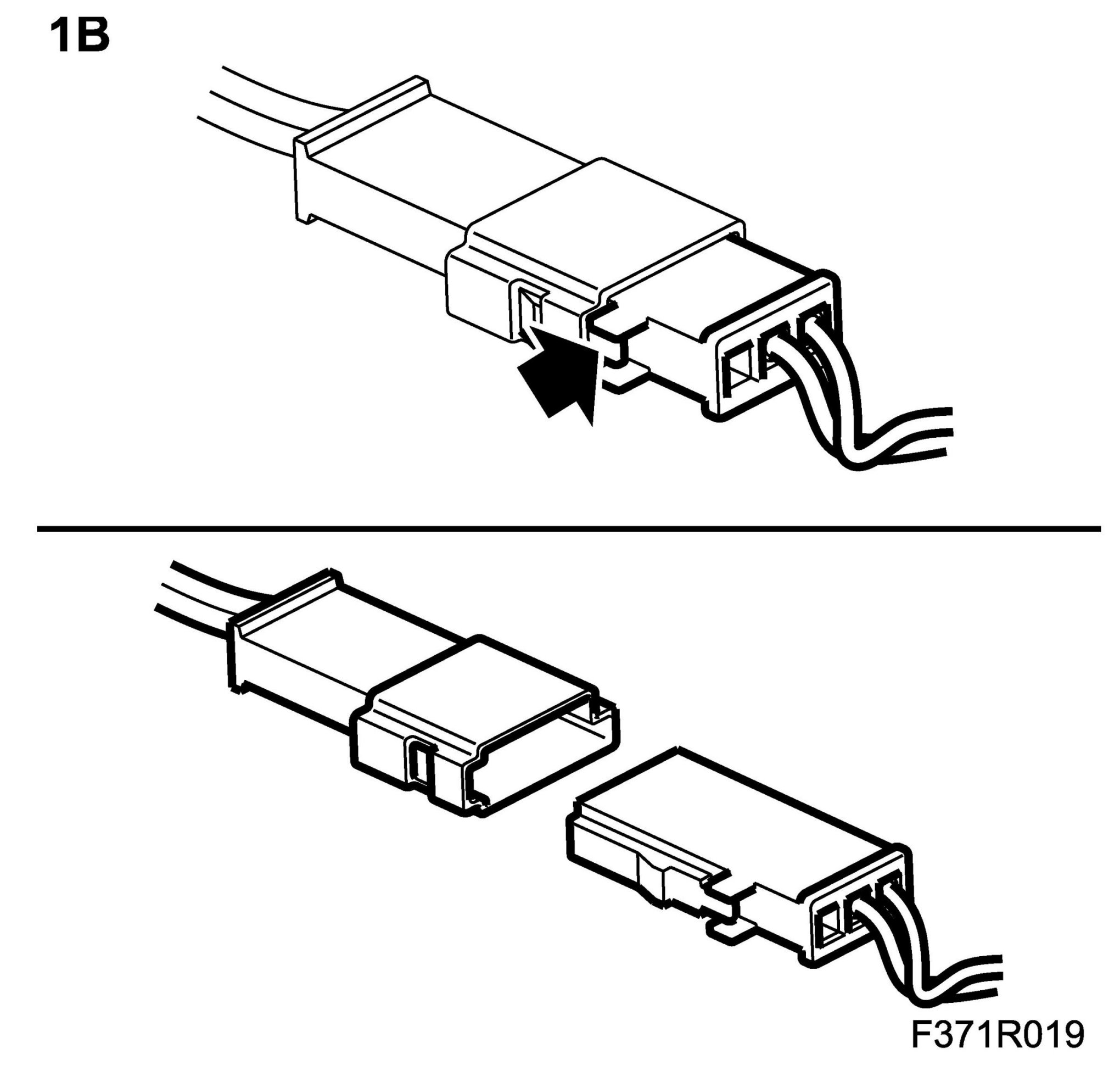 1.B. Press in the lock tab to unlock the connector.