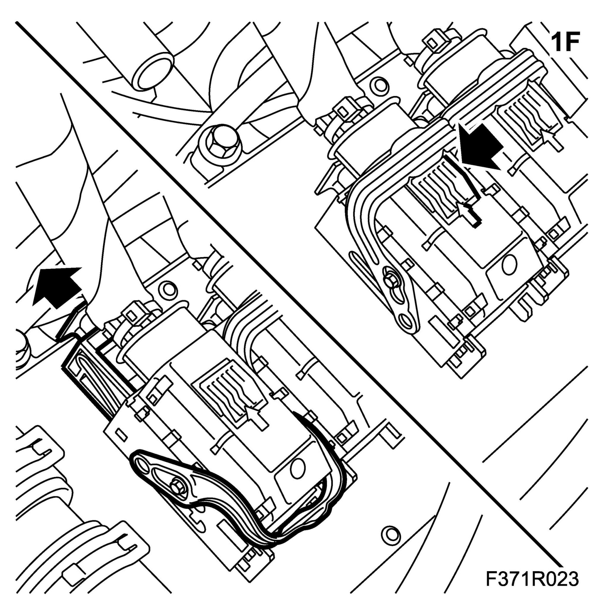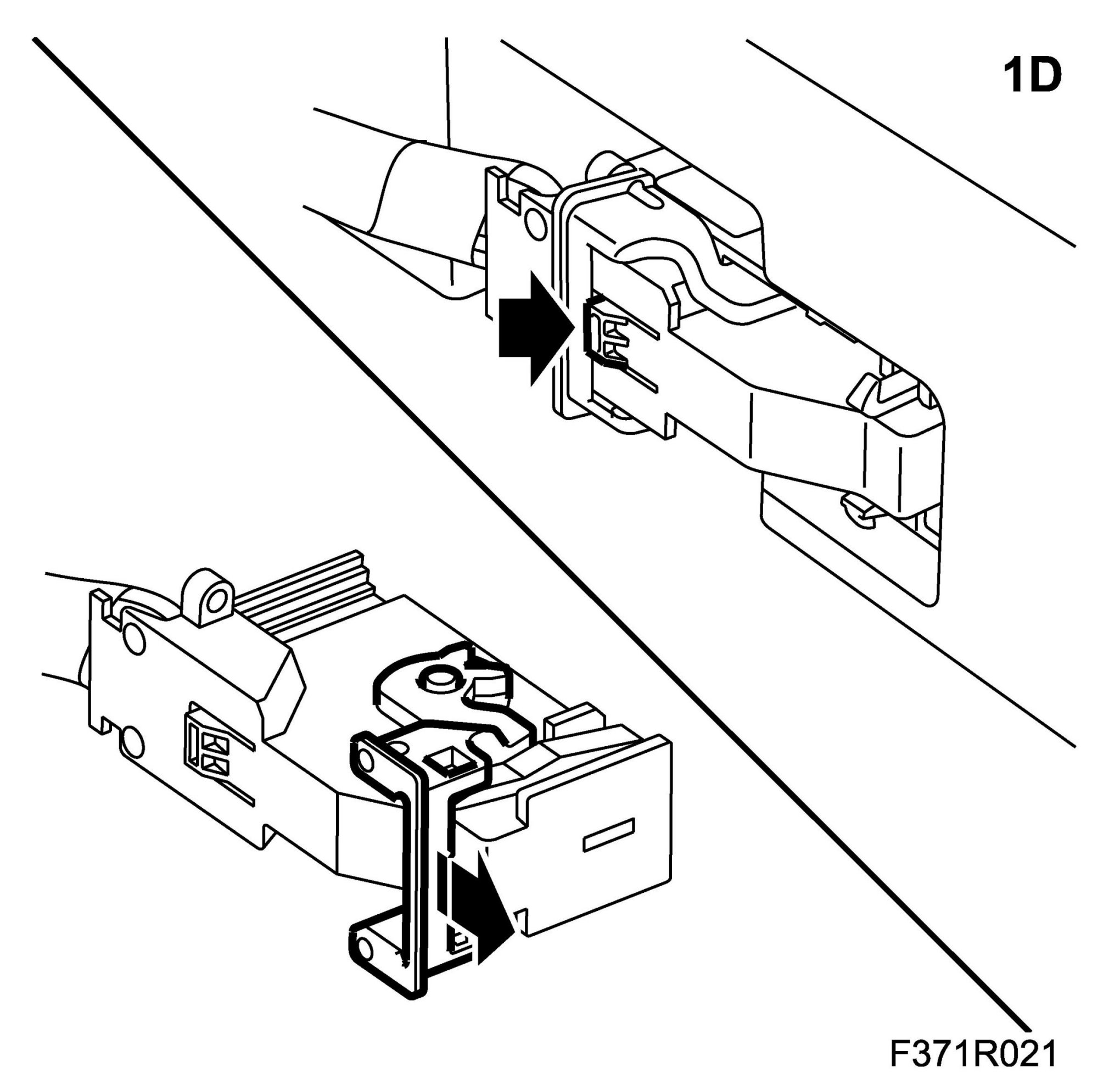 1.F. Press in the connector lock tab to release the brace. Release the connector slide while pushing the brace forward.