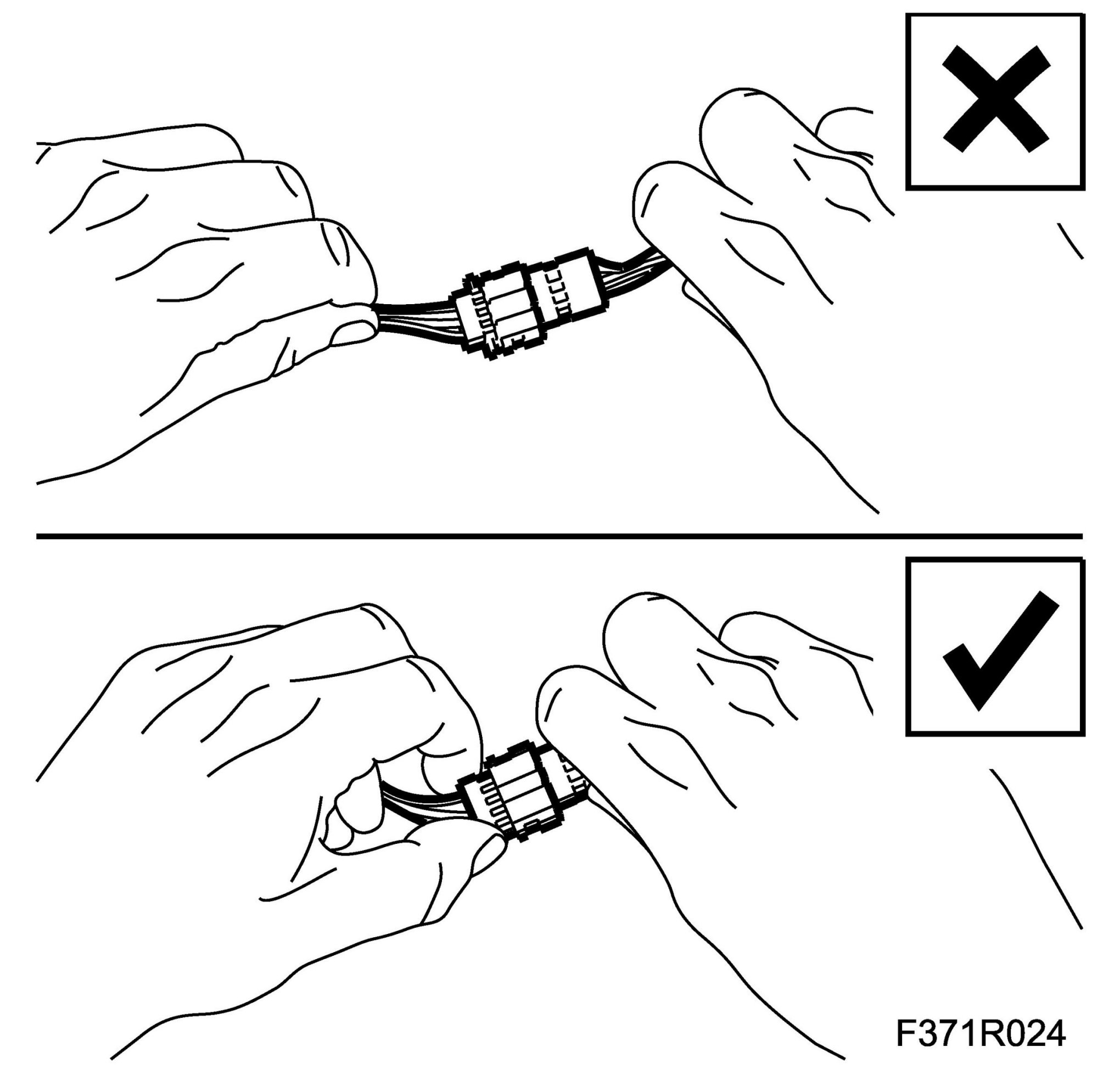 3. Never pull the wiring harness when removing a connector.