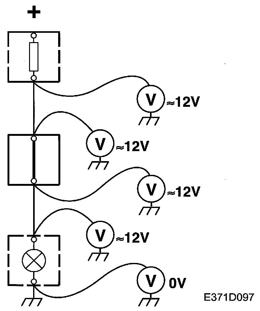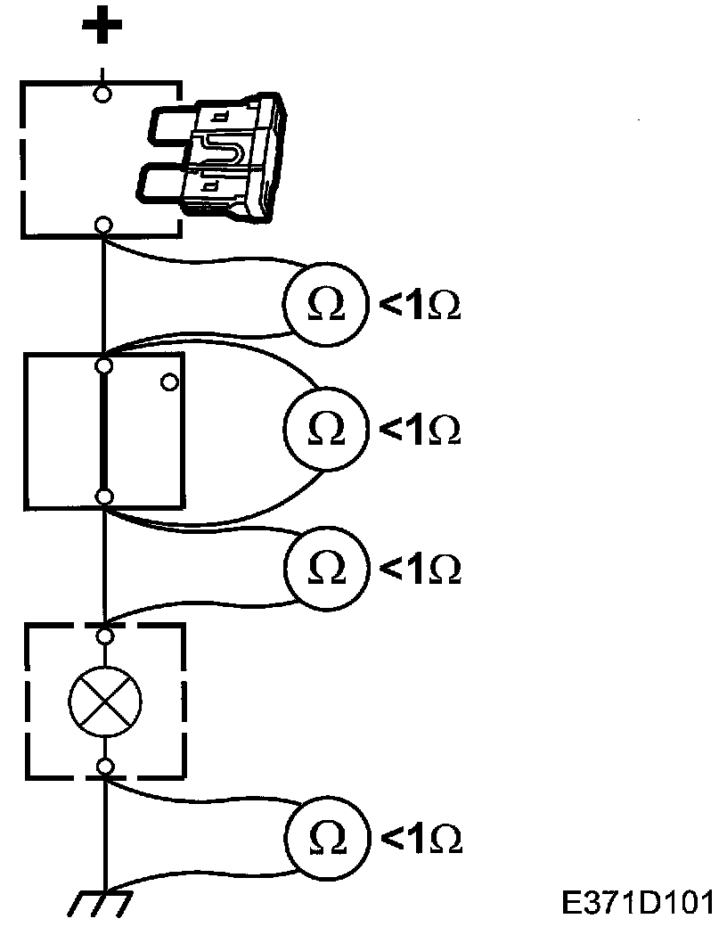 An ohmmeter must not be used to measure components containing semi-conductors such as control modules and relays with time delay functions, etc.