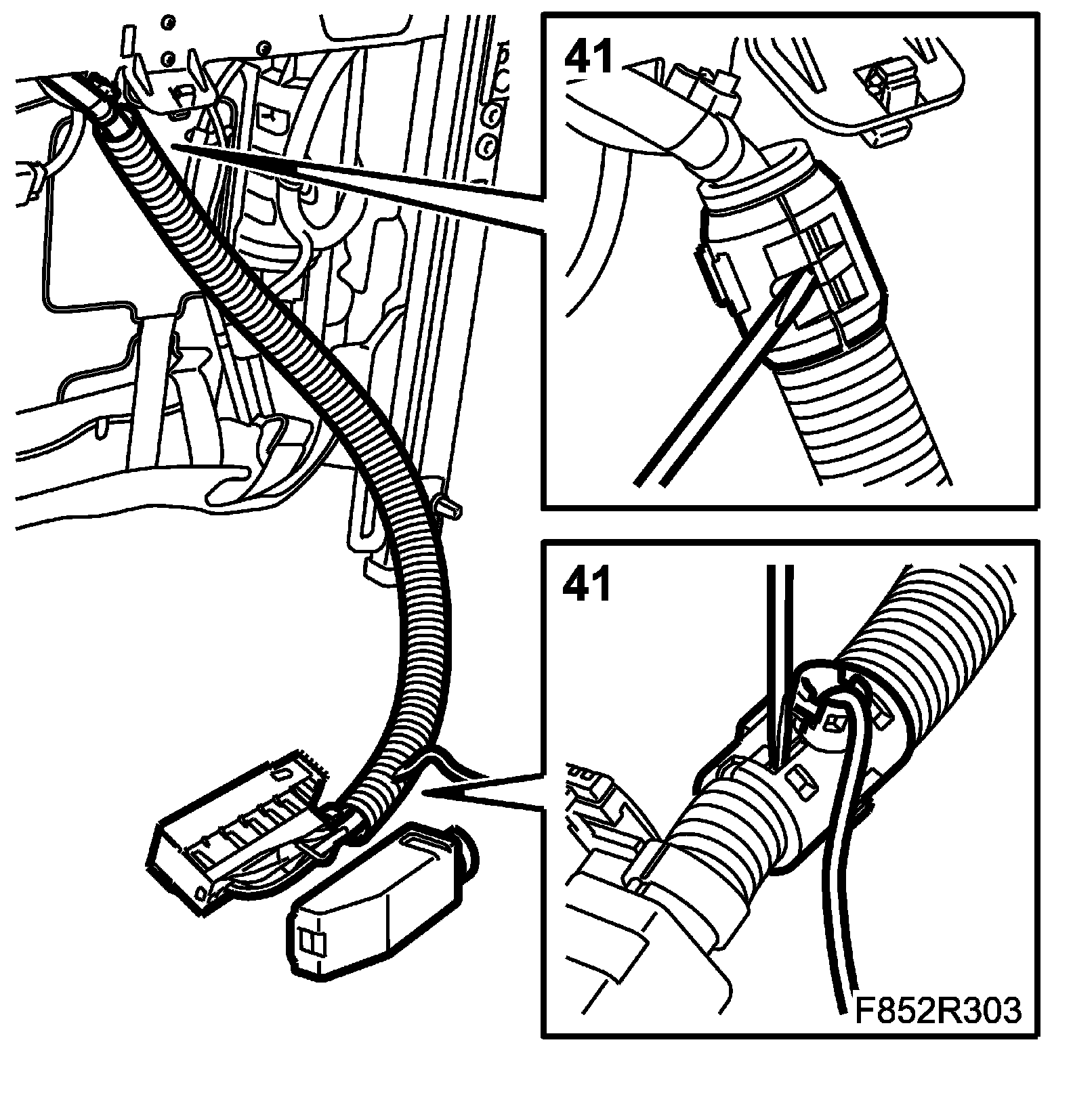 IMPORTANT: Take care when plugging in the connector so as not to damage or press out the pins/sleeves in the connector. For further information regarding connectors, refer to Connectors, handling and inspection.
