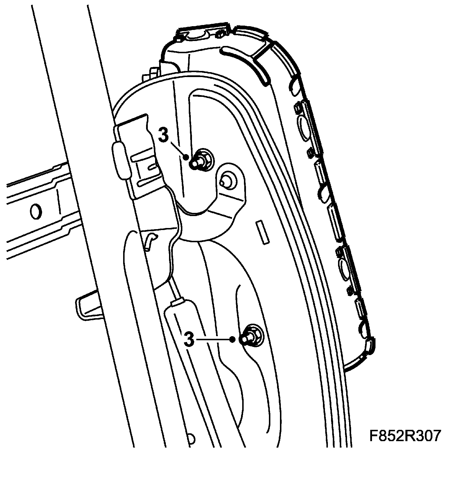 3. Remove the two rear retaining bolts from the seat.