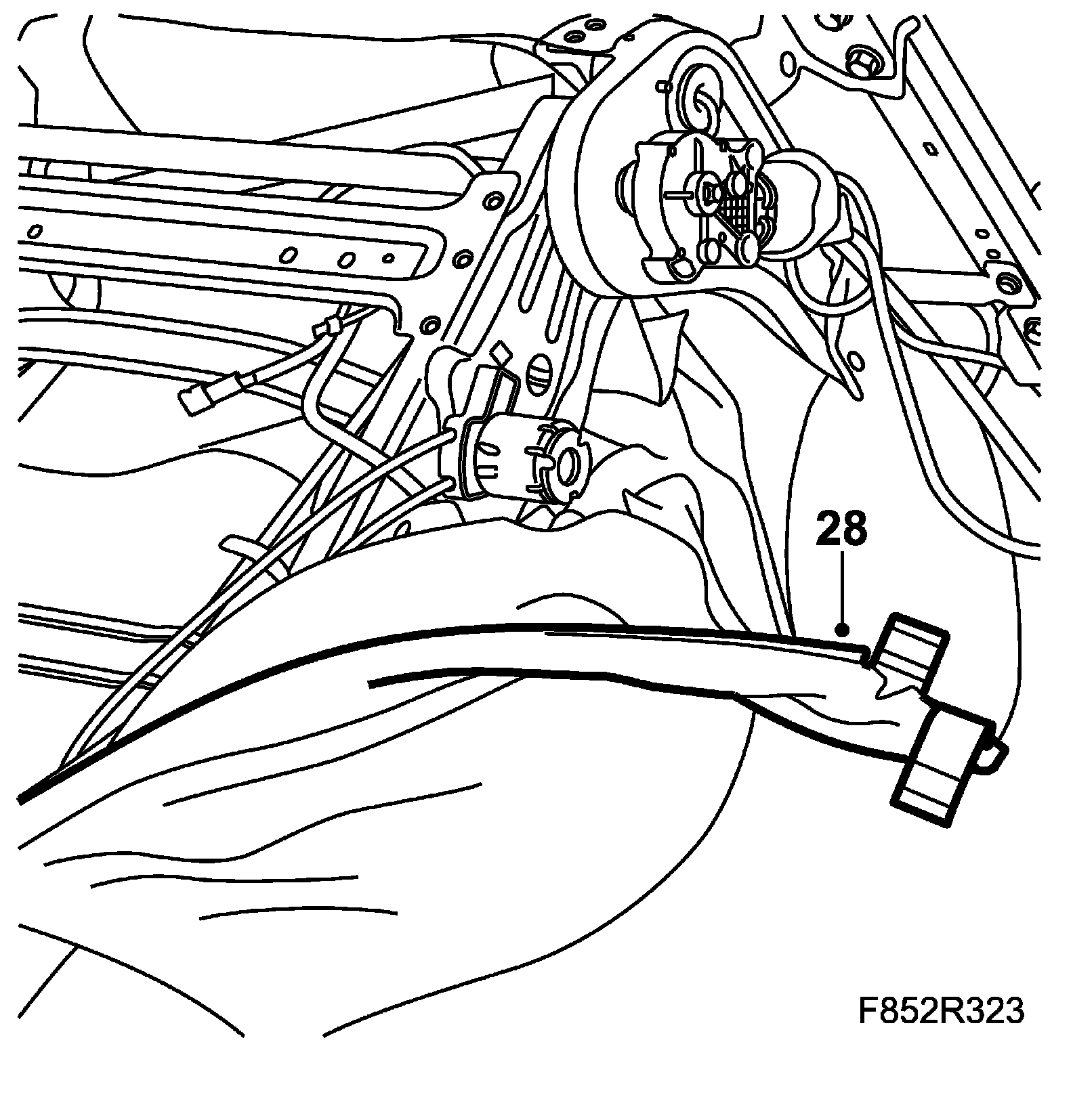 2. Fit the seat wiring harness and fix it.