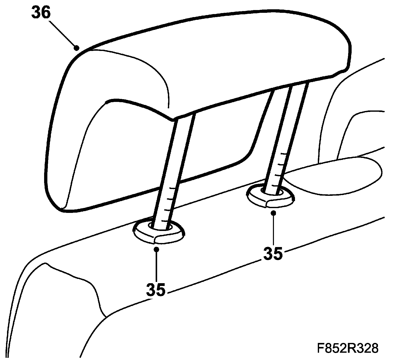 35. Fit the guides for the head restraint. Make sure that the catch inside the guide engages correctly.