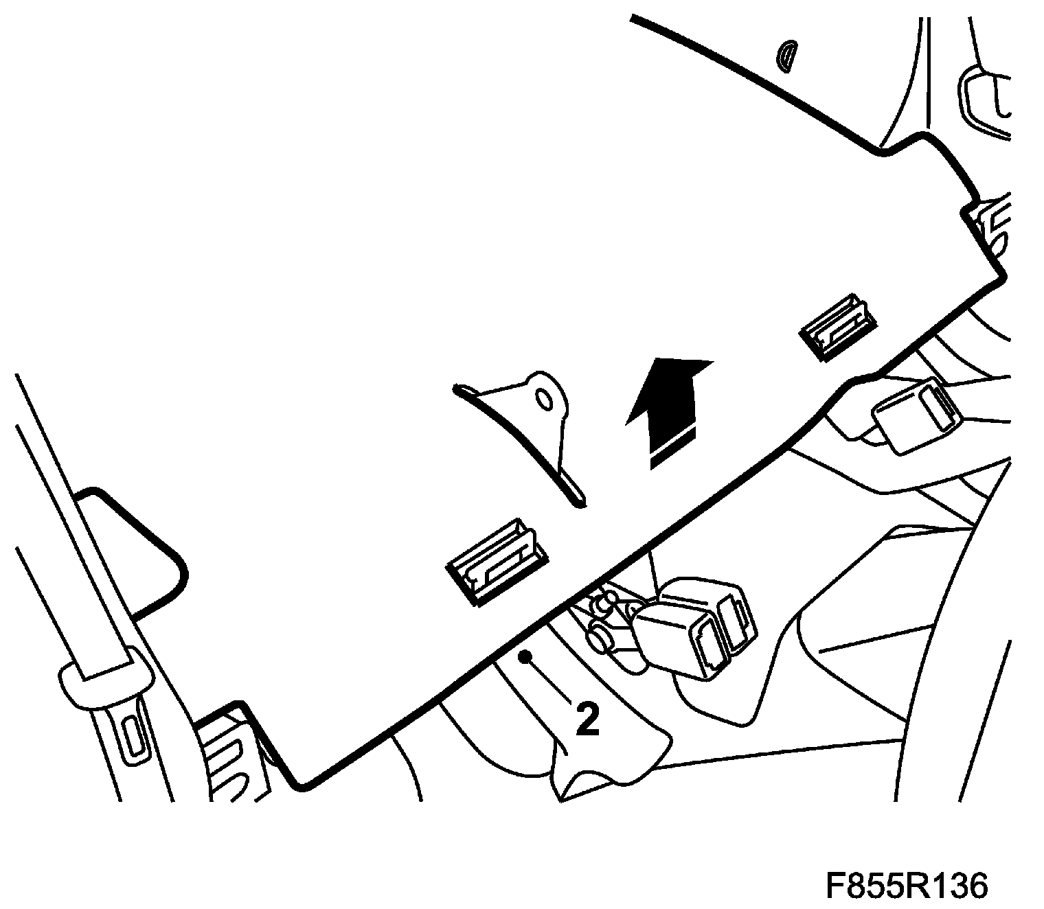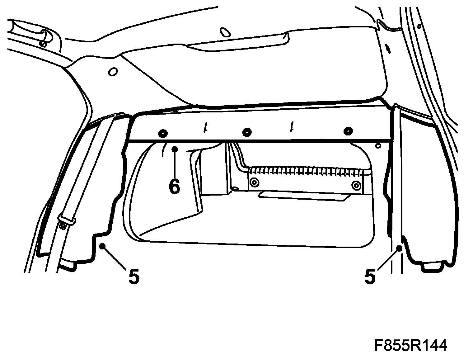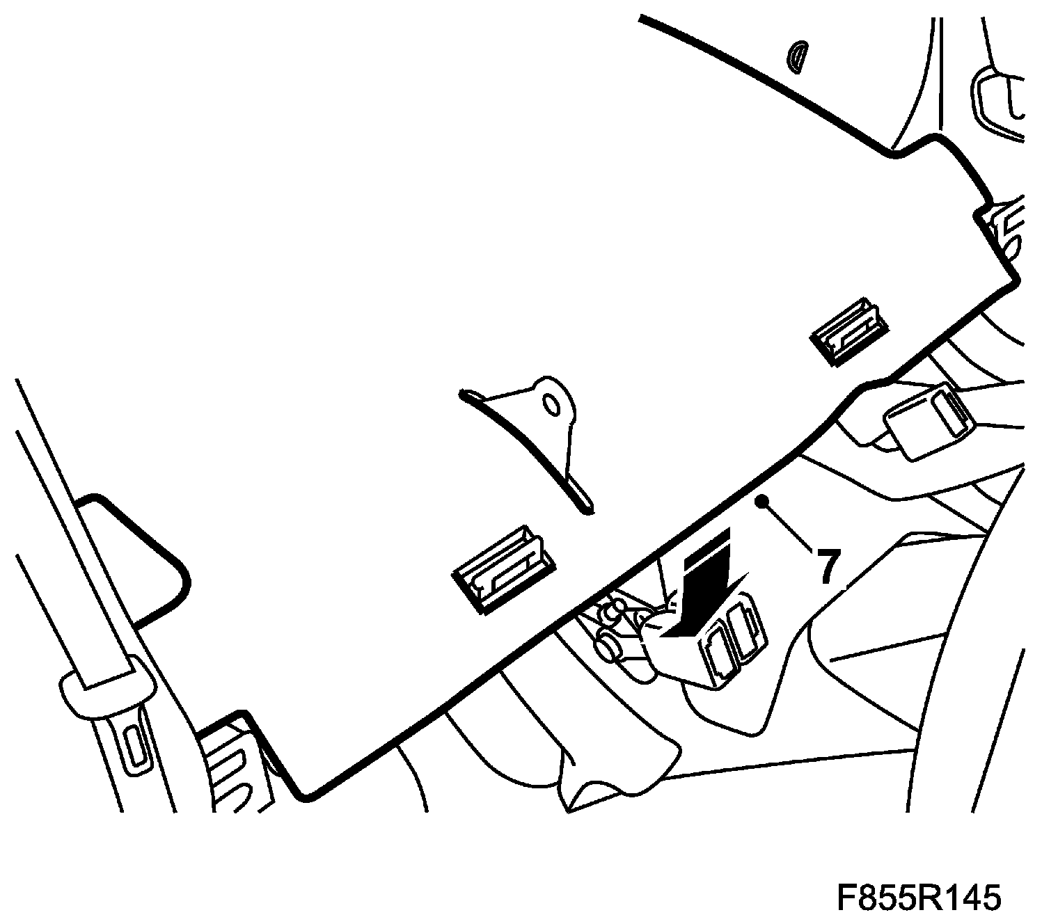 6. Fit the 3 two-stage rivets on the parcel shelf.