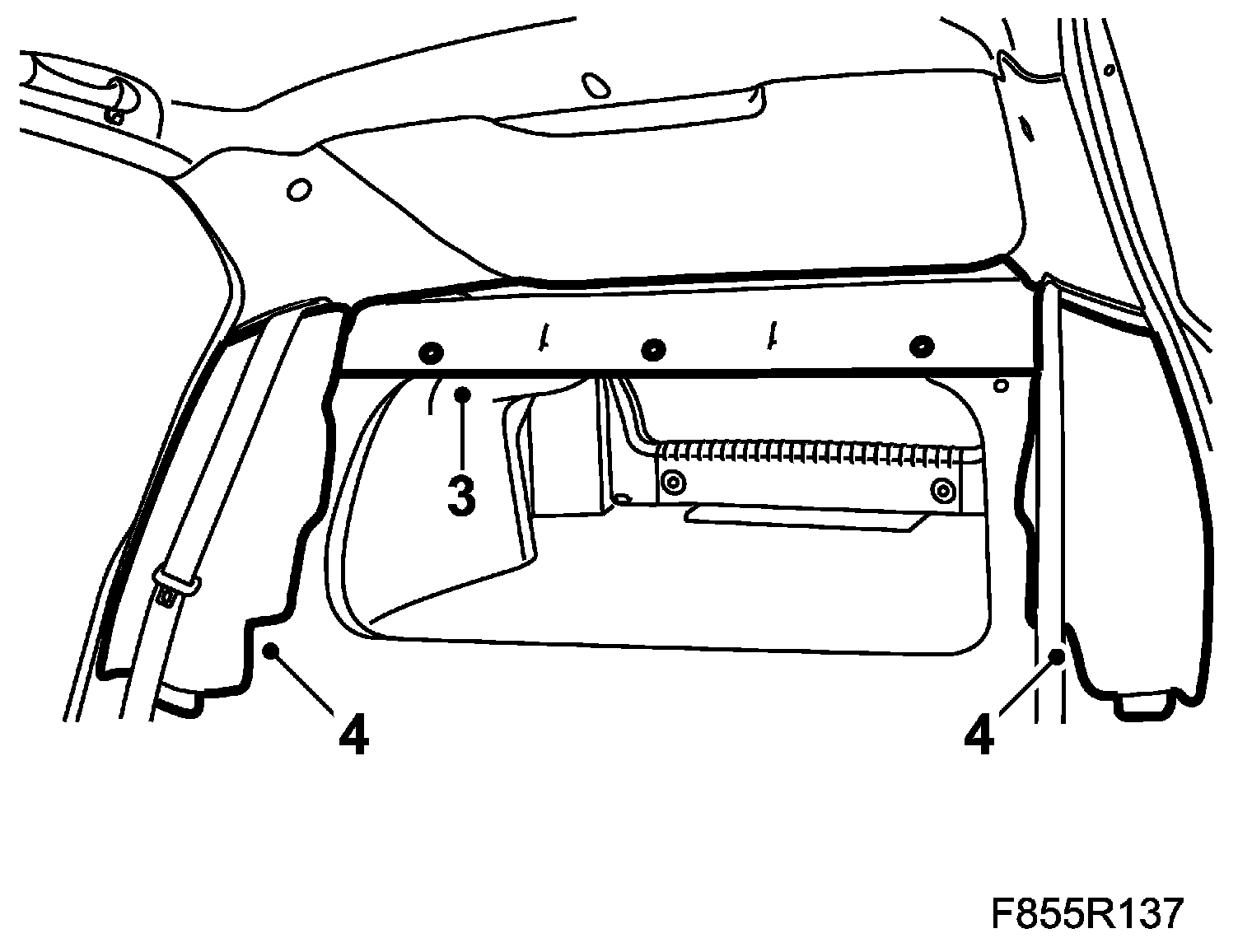 3. Remove the 3 two-stage rivets from the parcel shelf.