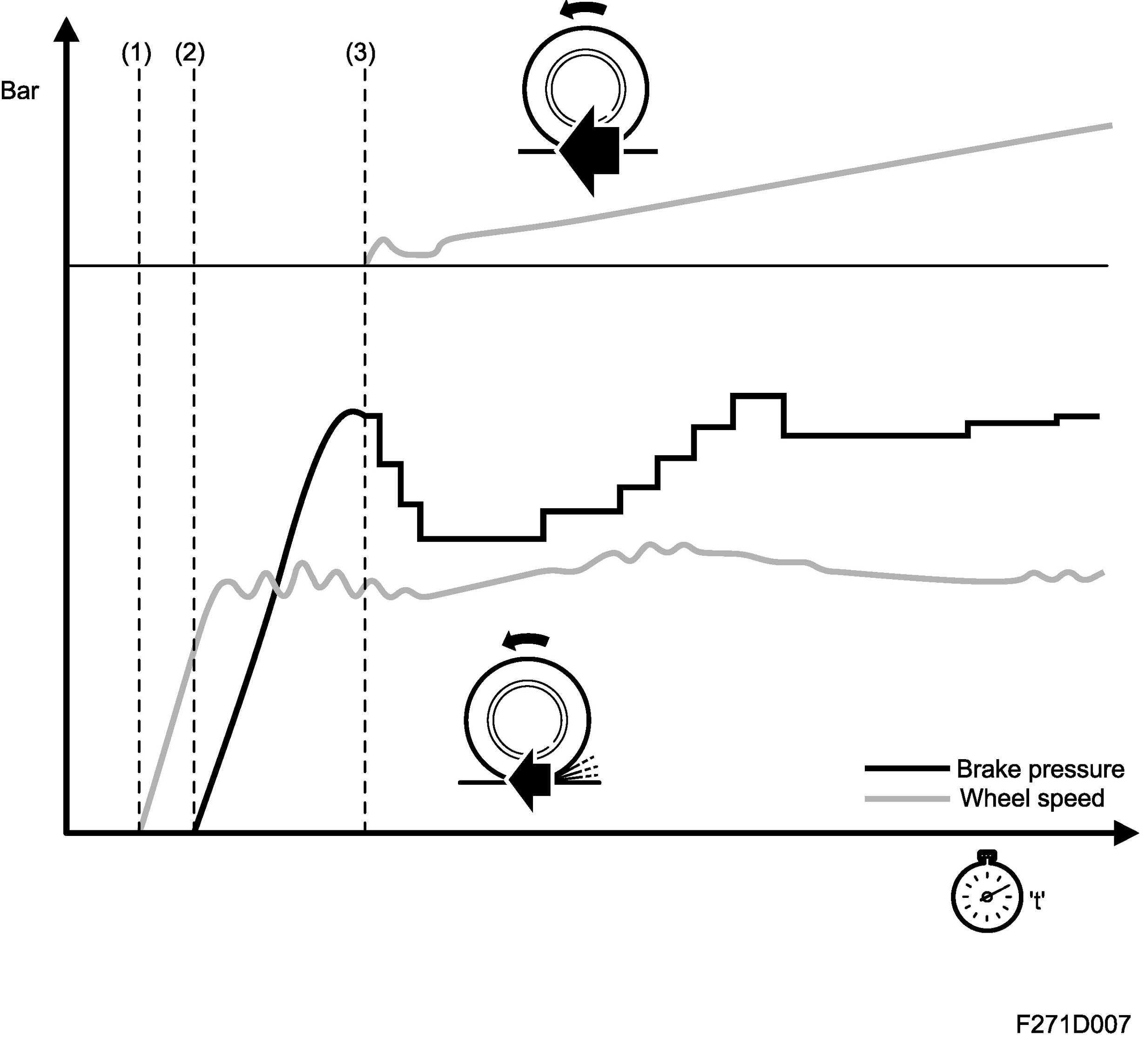 Phase I Pressure build-up on both front wheels (filling pulse and holding pressure) The driver does not brake.