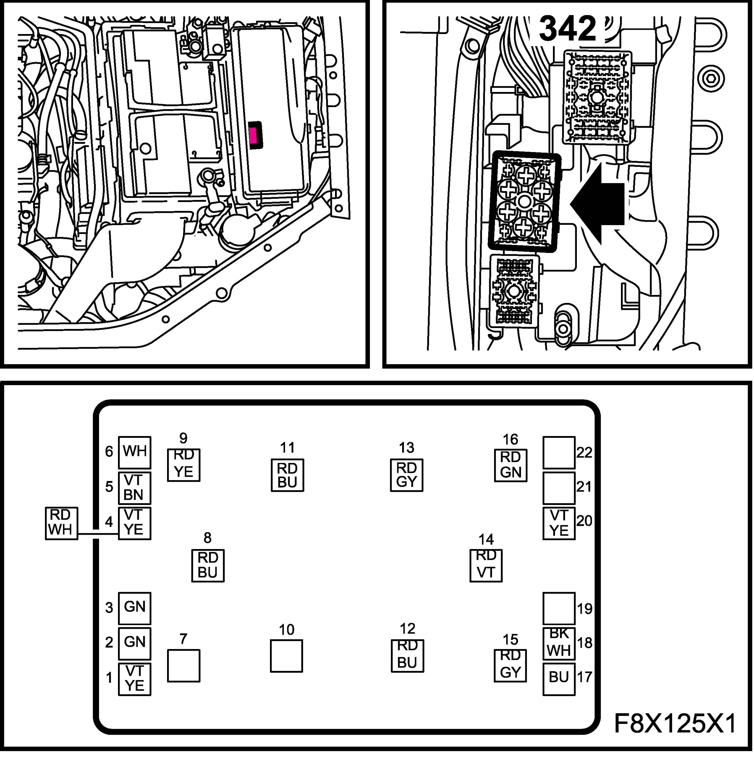 Fuse 33, engine bay electrical center 342, maxi fuse