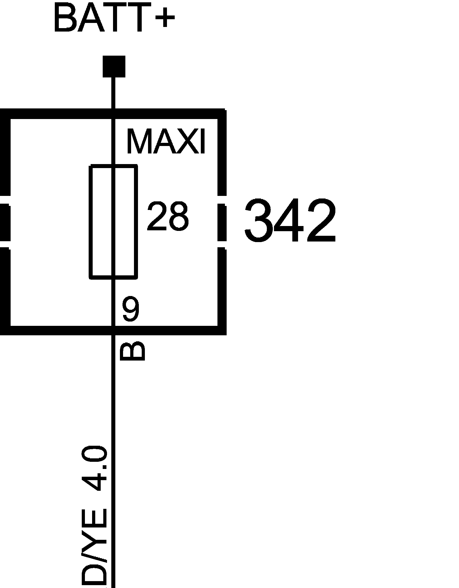 Fuse 28, engine bay electrical center 342, maxi fuse