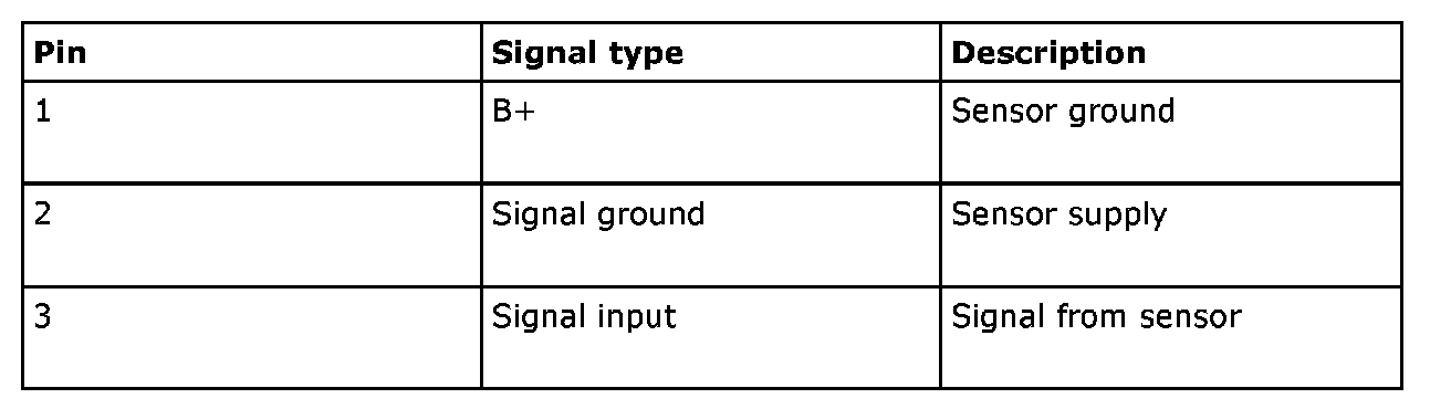 The sensor is supplied power from pin 1 and ground on pin 2 of the EHPS control module. Pin 3 provides information on steering speed via a 500 Hz PWM signal. The pulse ratio carries information on steering speed - 12.5% to 87.5%, which corresponds to 0 degree/second to 60 degrees/second.