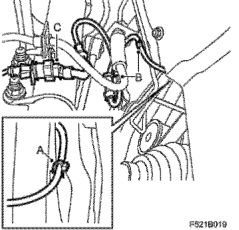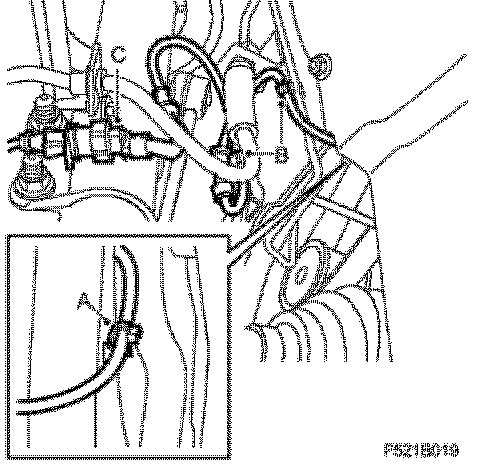 21. Secure the wheel sensor cable adjacent to the existing cable ties (A).