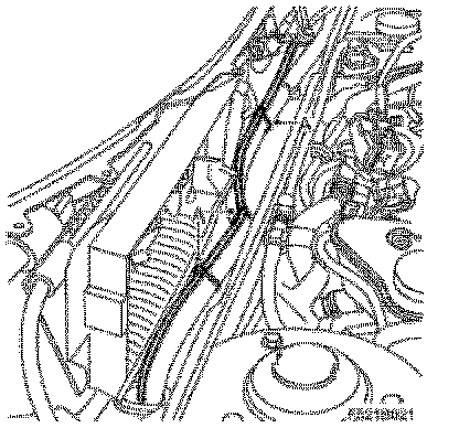 7. Route the new wheel sensor cable down along the structural member next to the damaged wheel sensor cable.