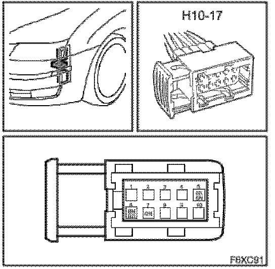^ Clean any corrosion from the wheel sensor's connector housing (C). Use contact 61.