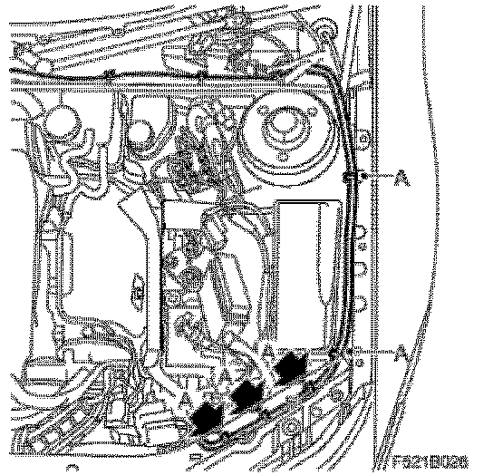 ^ Remove the rear bonnet seal (A).