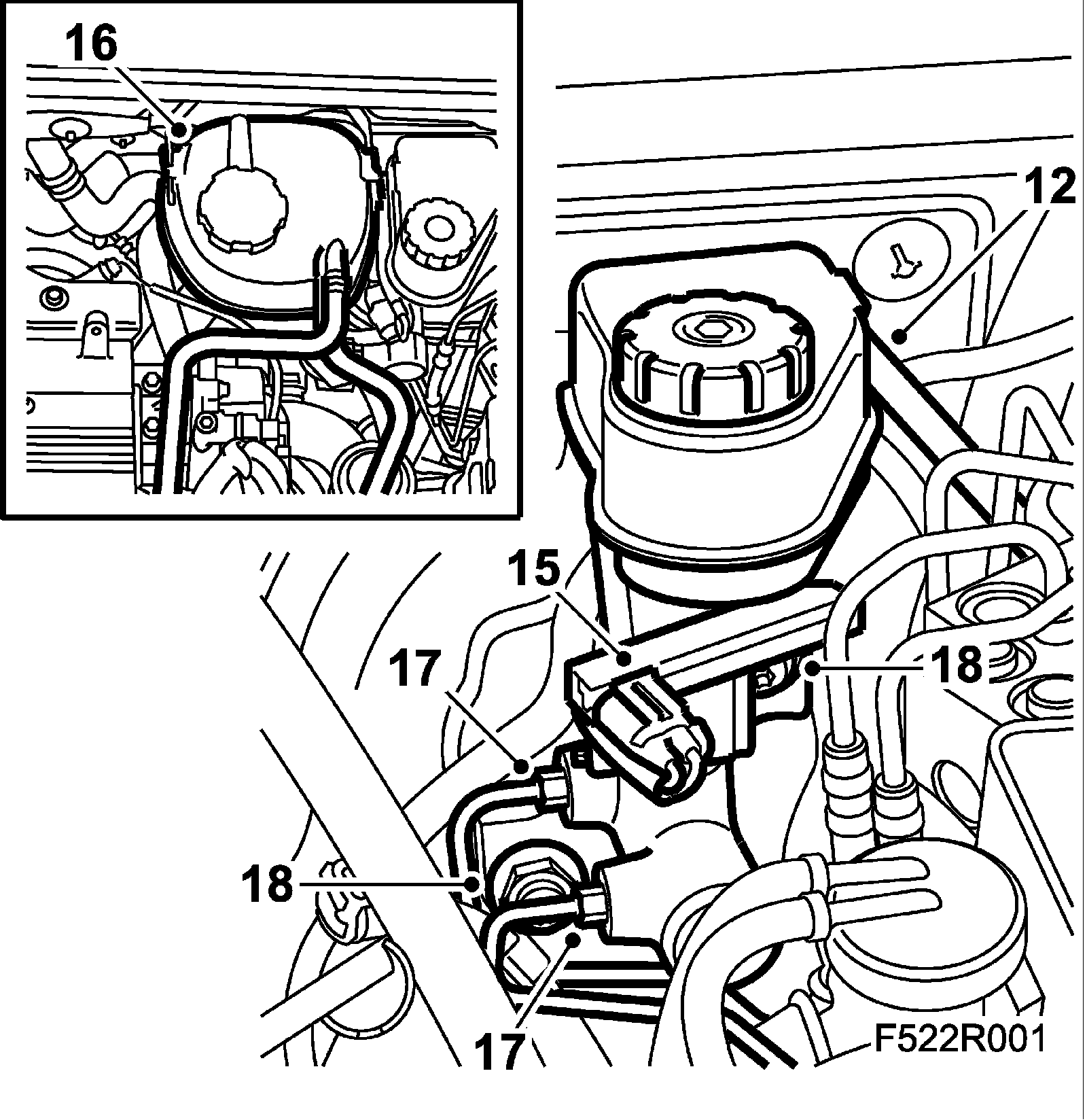 18. Remove the nuts securing the master cylinder to the brake servo.