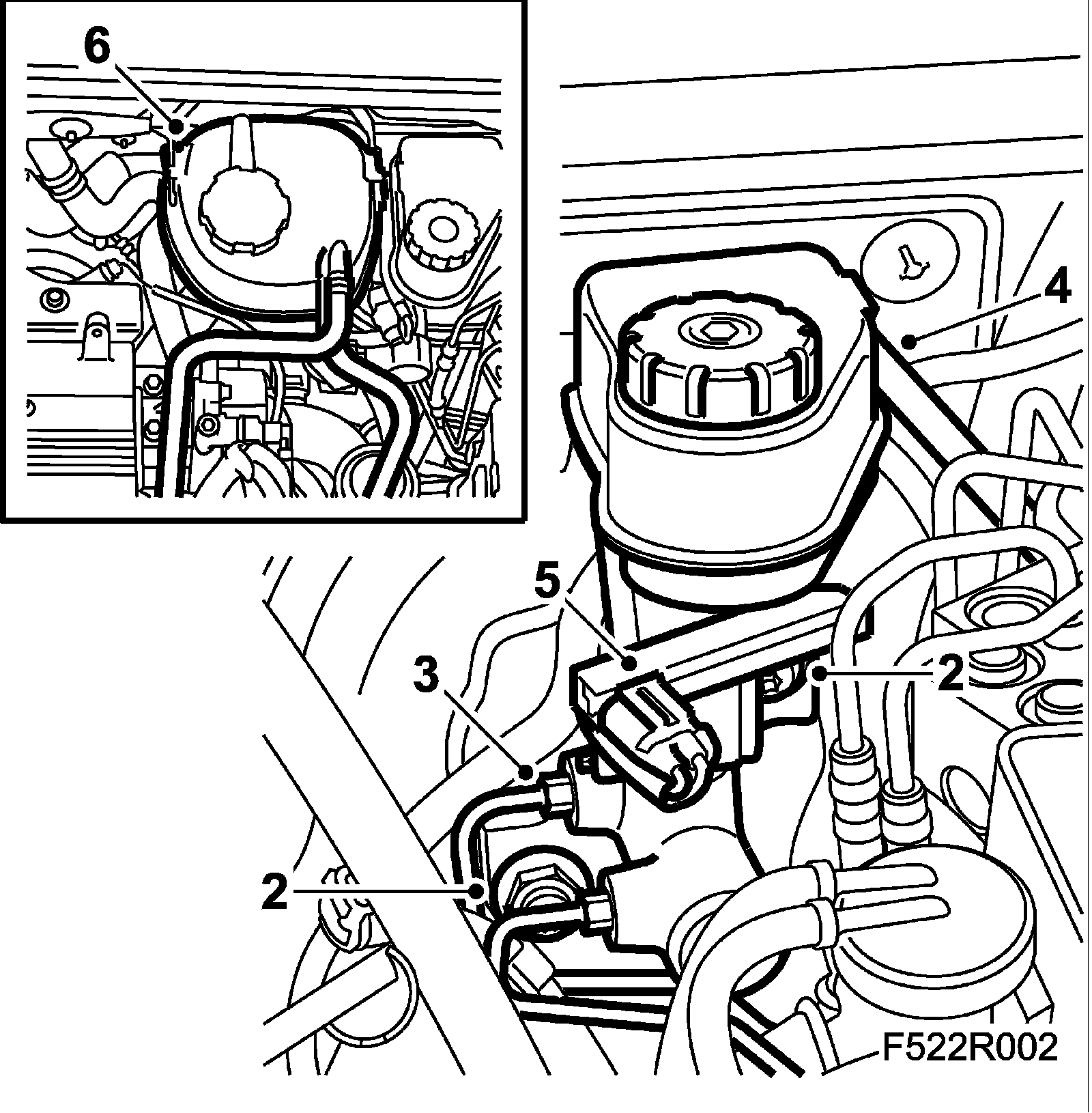 4. Manual gearbox: Connect the hose from the main clutch cylinder to the reservoir.