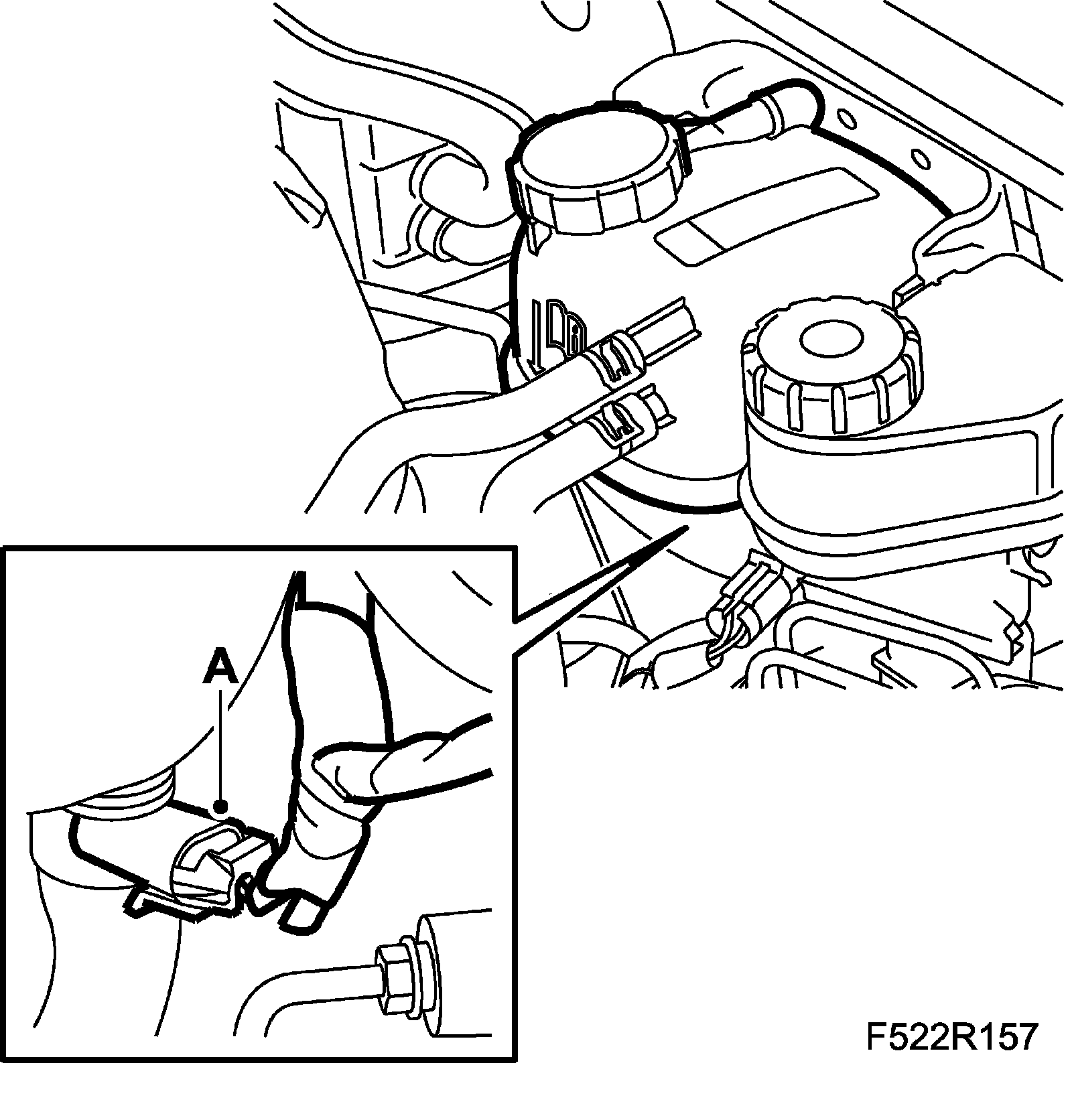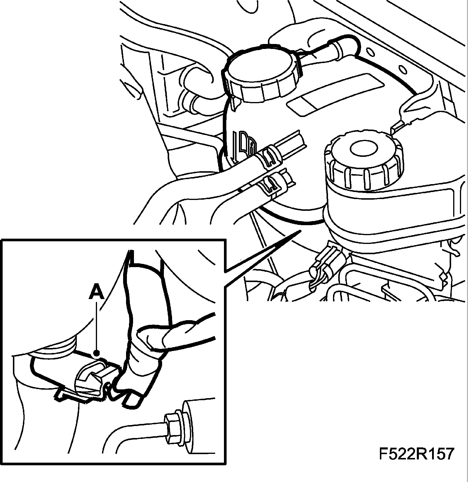 3. B207: Unplug the connector (A) for the coolant's level sensor.