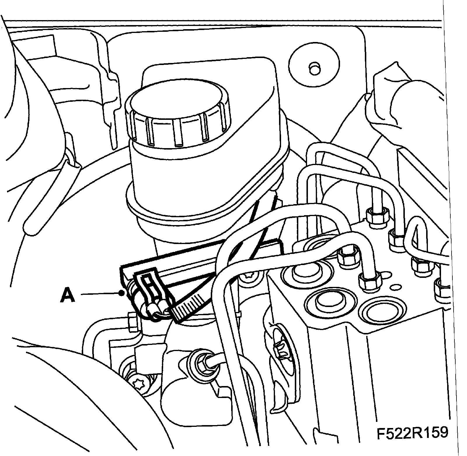 8. Unplug the connector (A) for the brake fluid reservoir's level sensor.