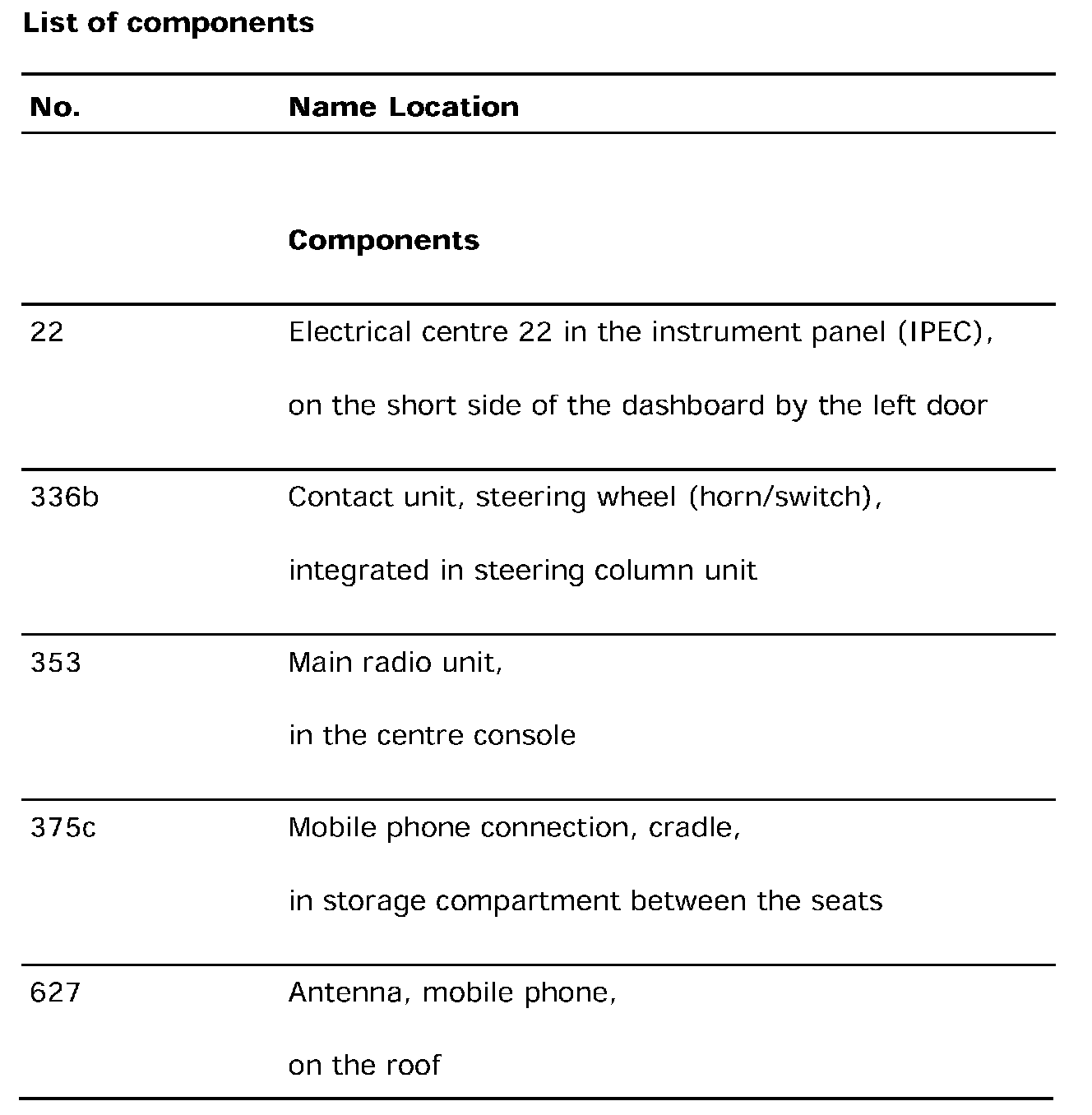 List Of Components (Part 1):