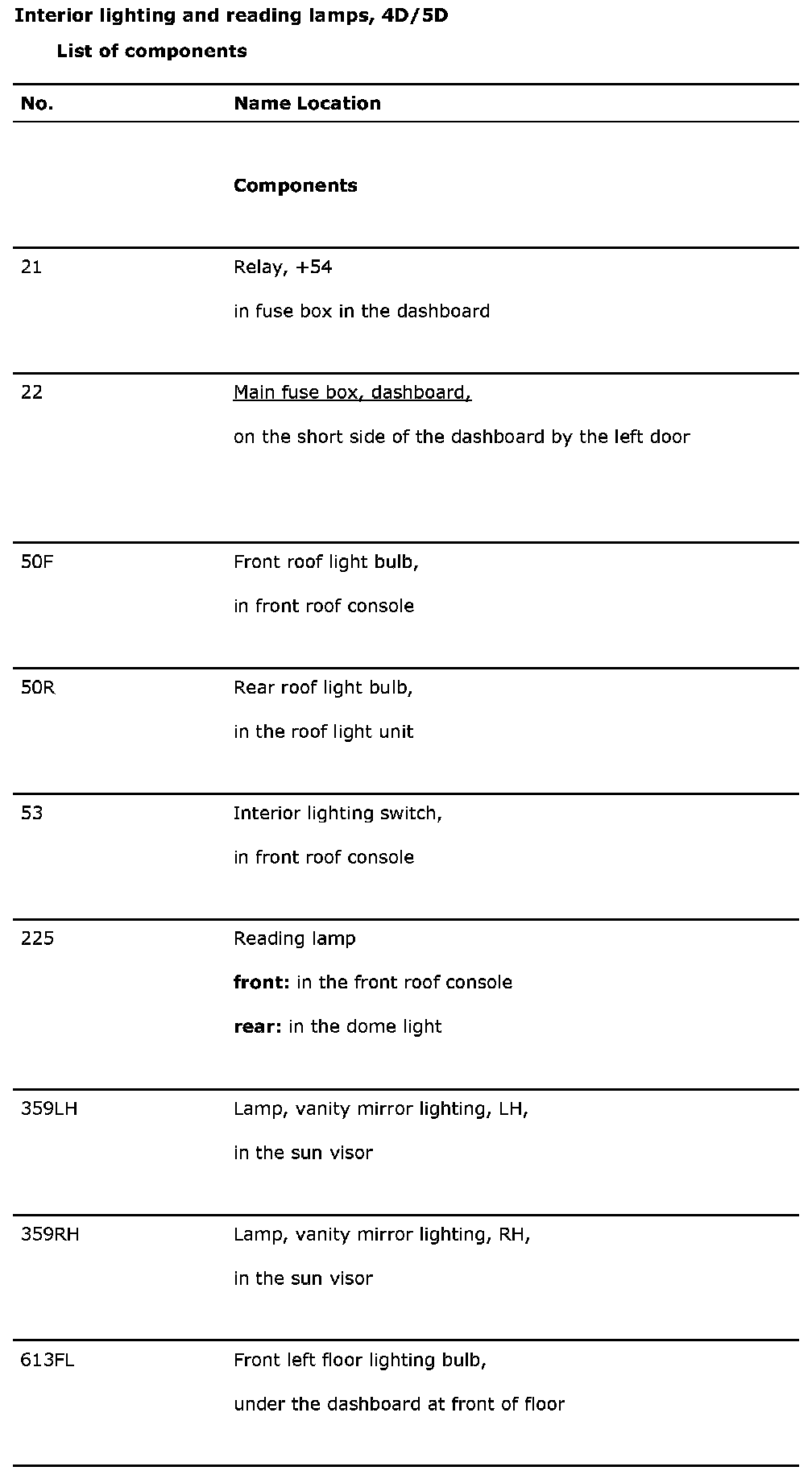 Interior Lighting and Reading Lamps, 4D/5D