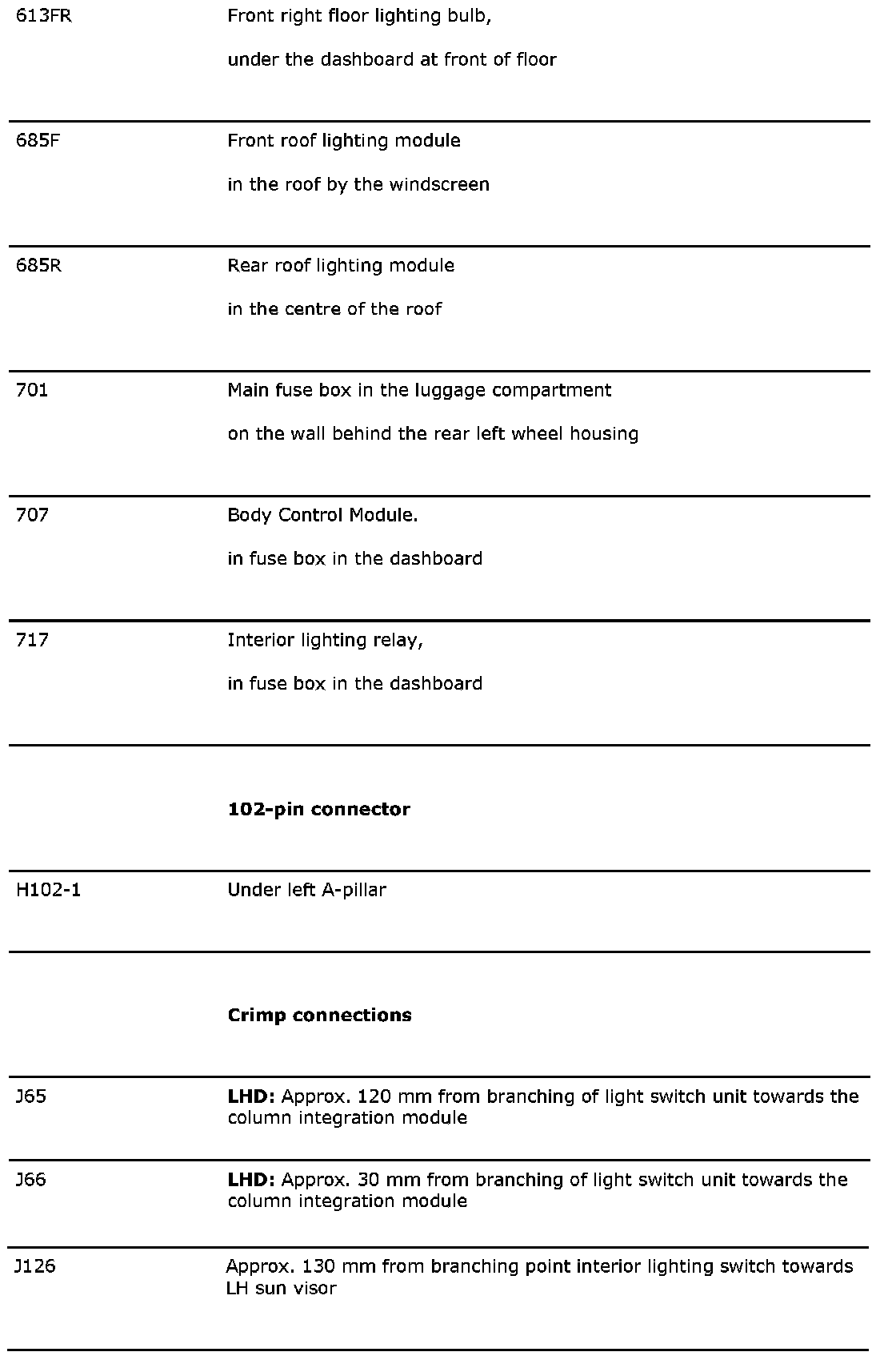 Interior Lighting And Reading Lamps: