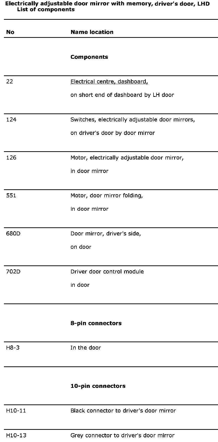 Electrically Adjustable Door Mirror With Memory, Driver's Door, LHD
