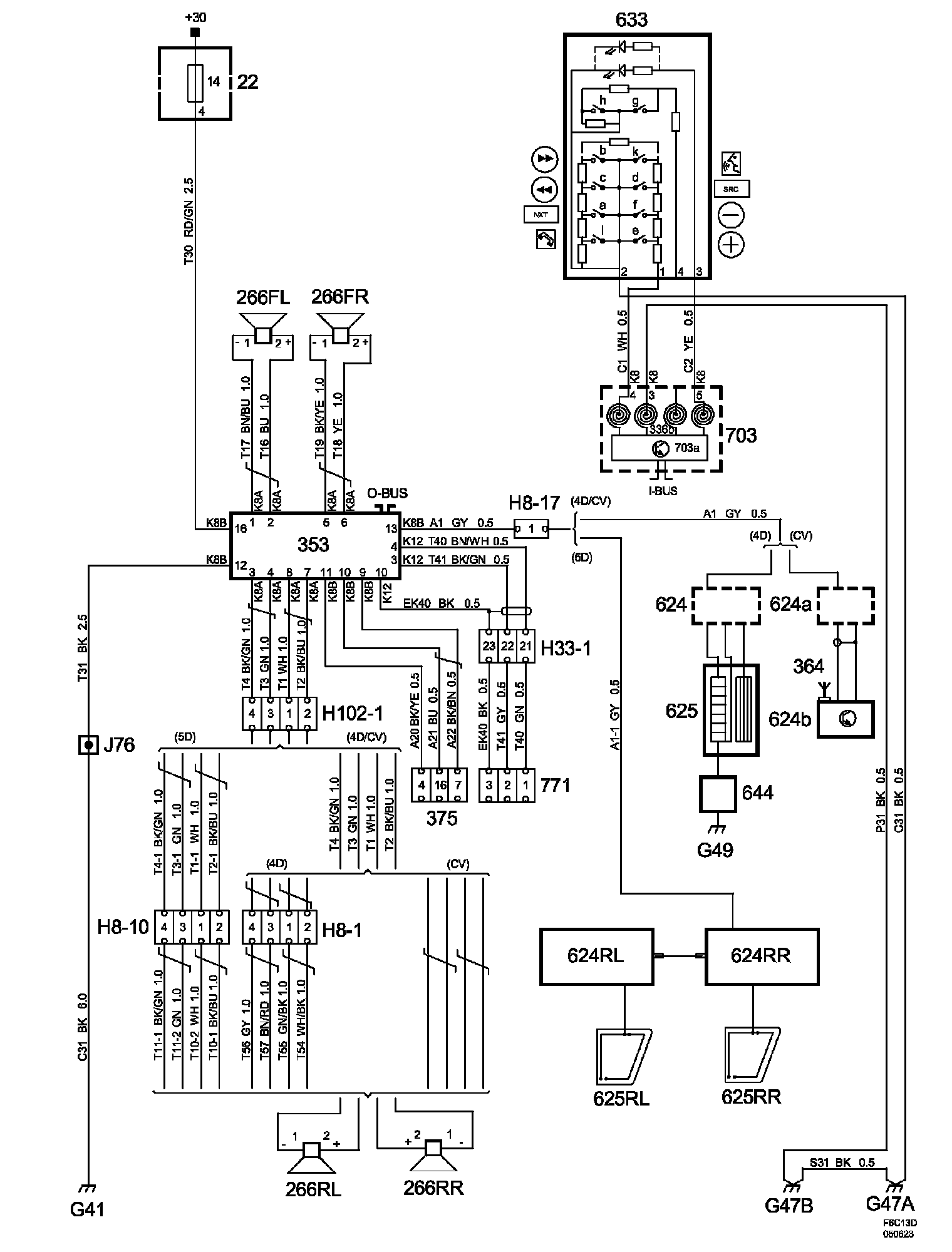 Power Supply Diagrams: The diagrams for the power supplies that may be feeding this system (+30, +15, +54, +X, and +B) can be found at Power and Ground Distribution diagrams. Electrical Diagrams